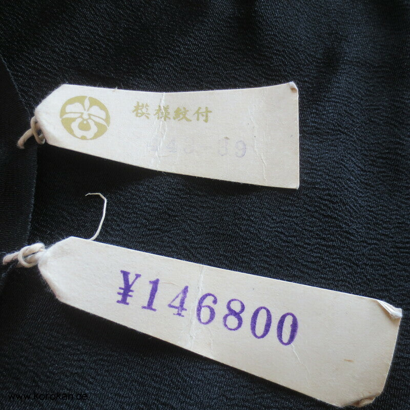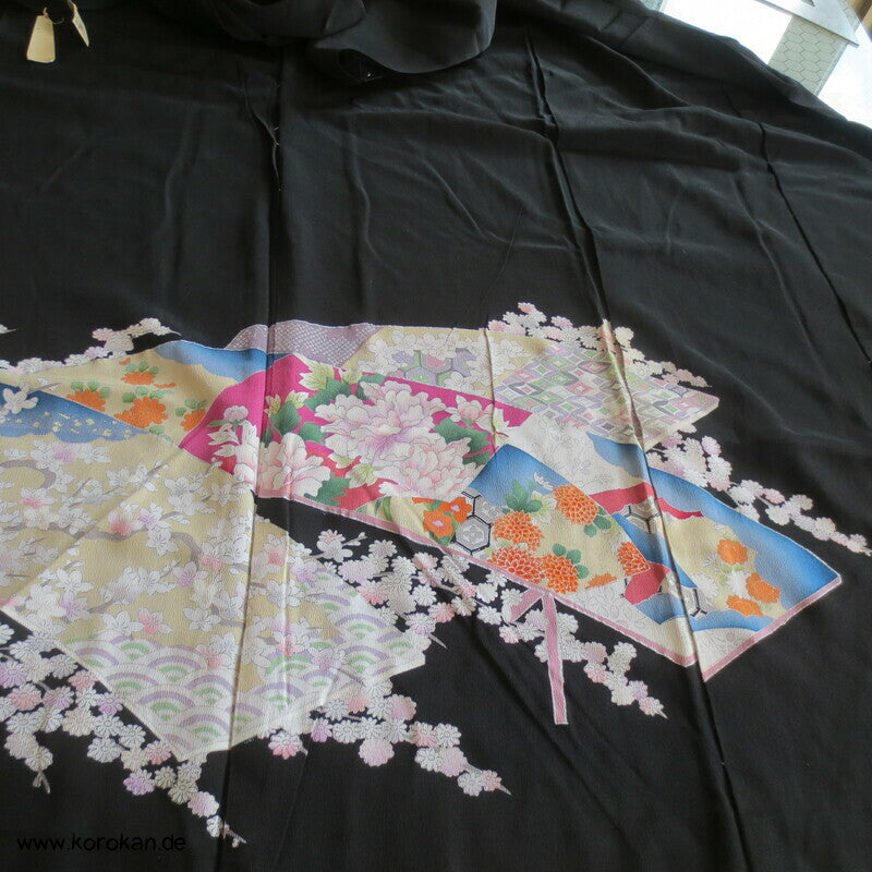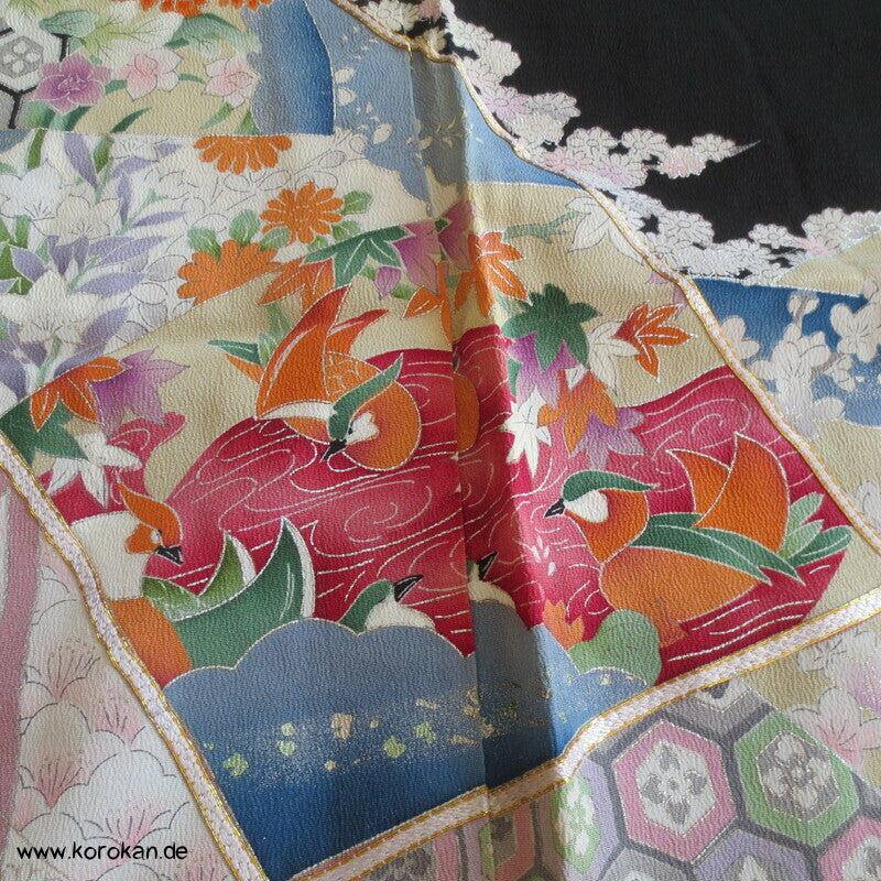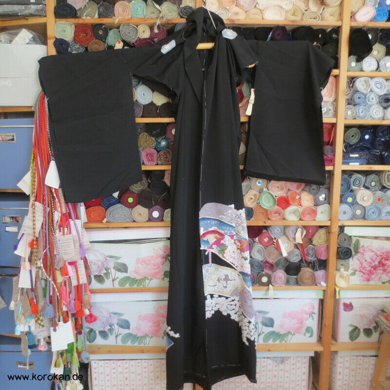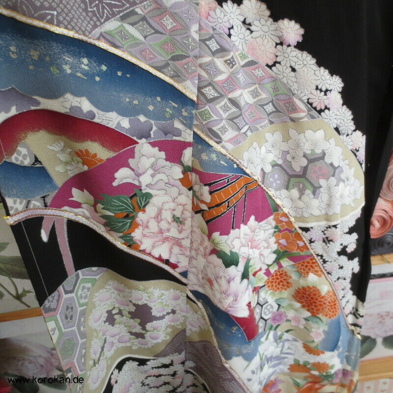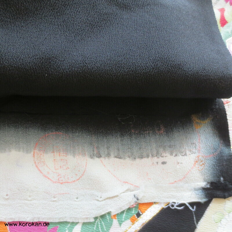 Vintage unbenutzter Karieba Tomesode, geheftet, nicht genäht, bestickte Traumbrücke mit ganz vielen kleinen Mustern, neuer Stoff, Seide mit Stempeln