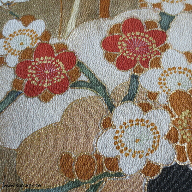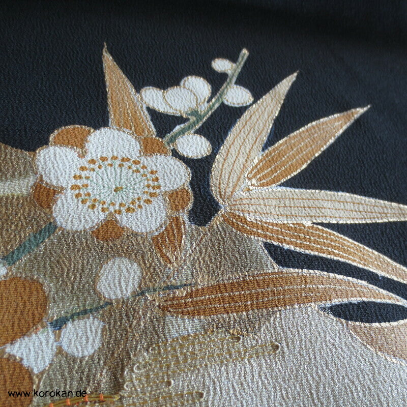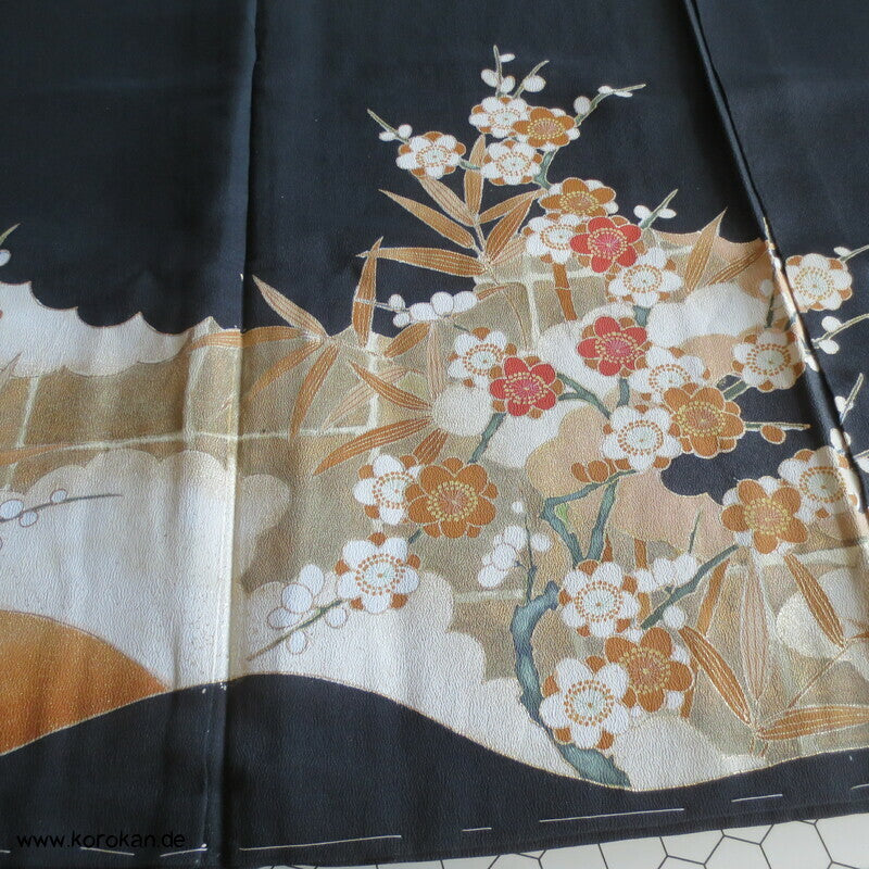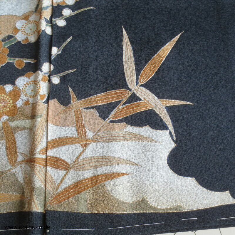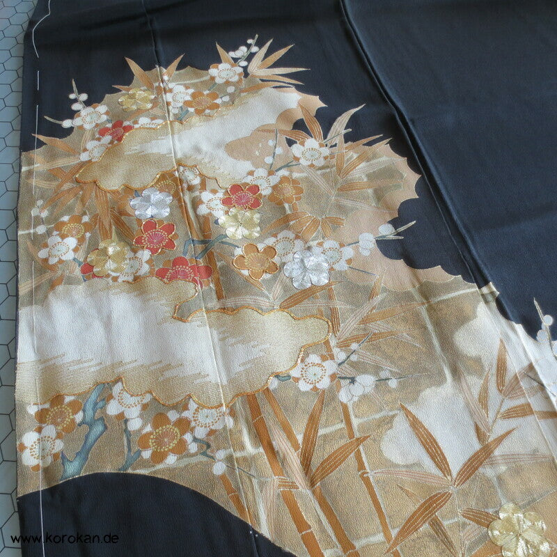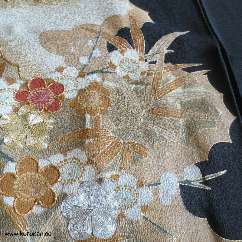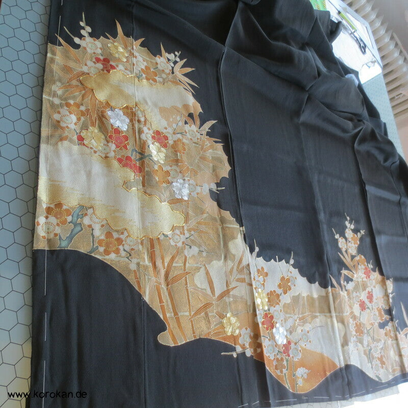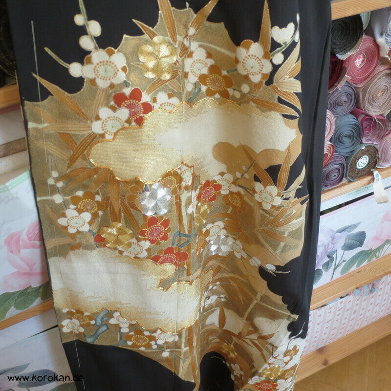 Tomesode, Ume und Bambus, viel Gold Seiden Karieba