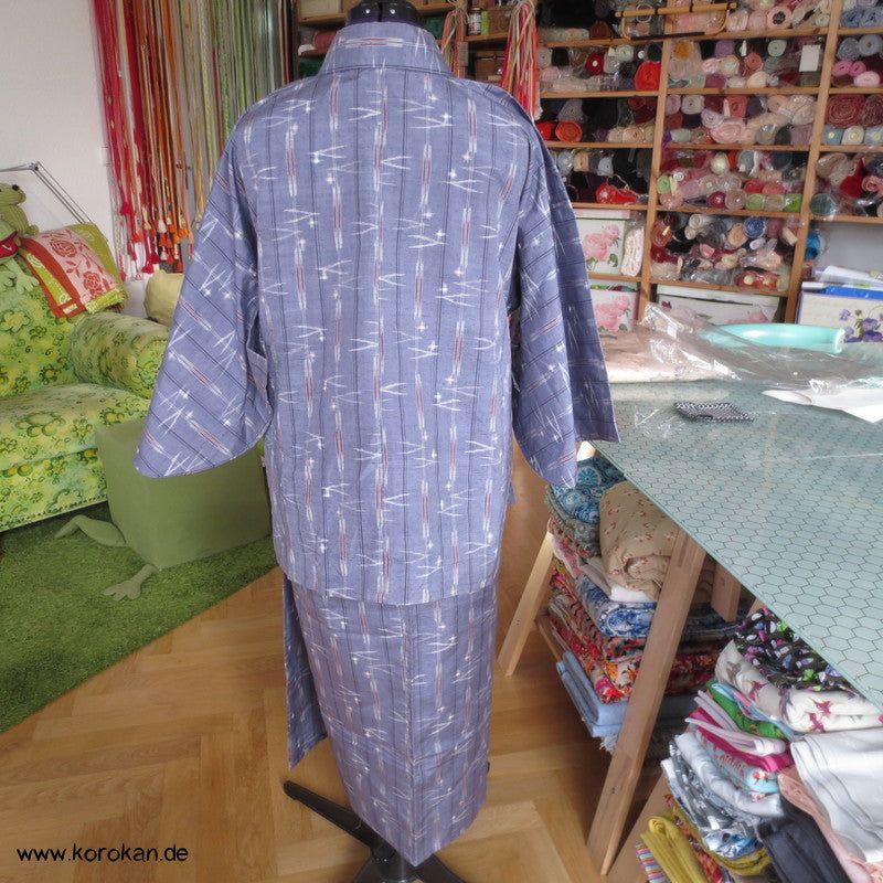 Tsumugi Kasuri zweiteilig Dochugi + Wickelrock