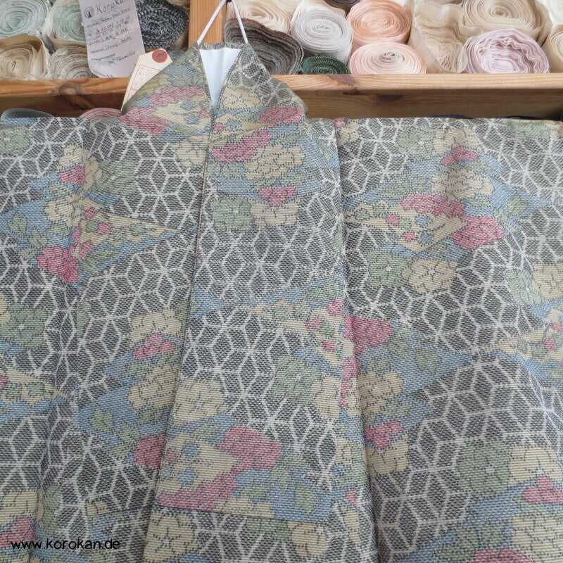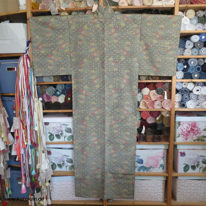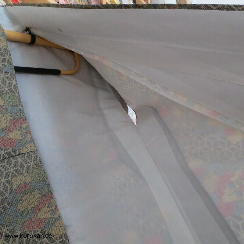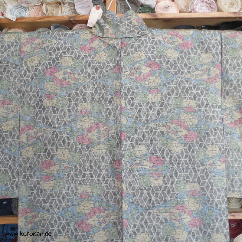 Tsumugi Seiden Kasuri Asanoha mit Blüten Kimono