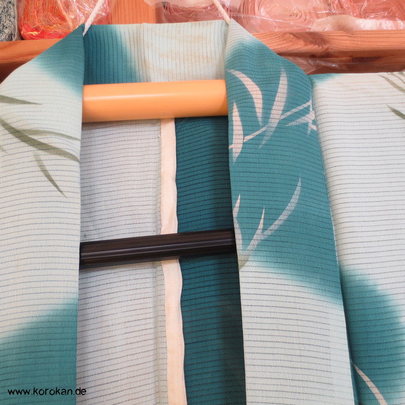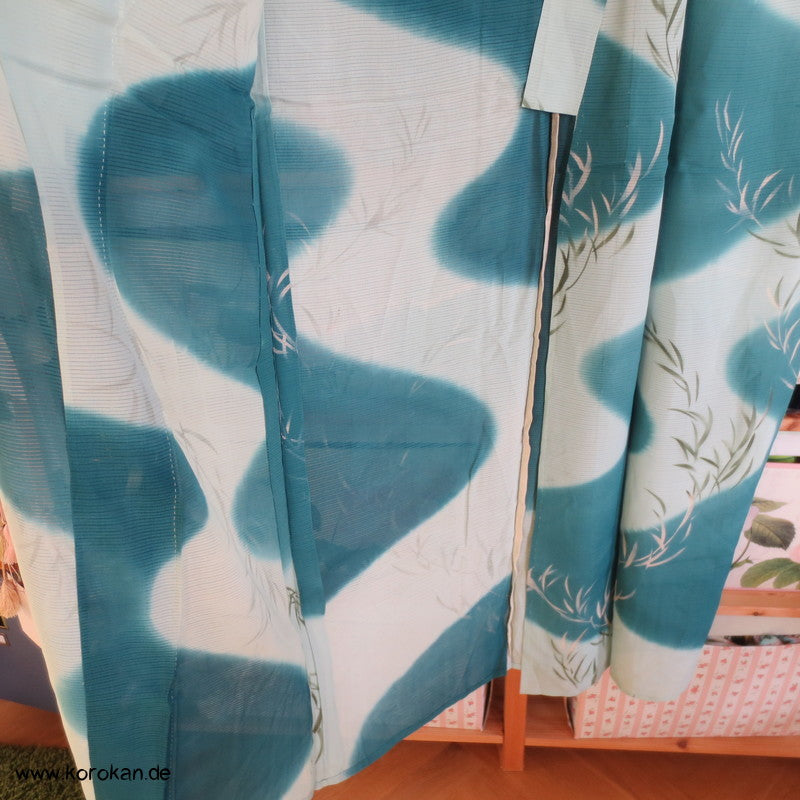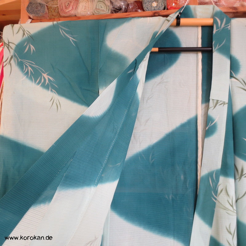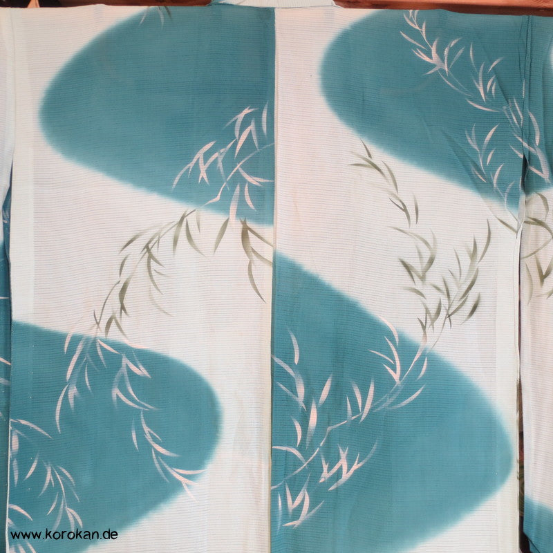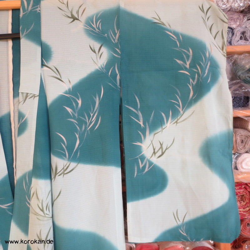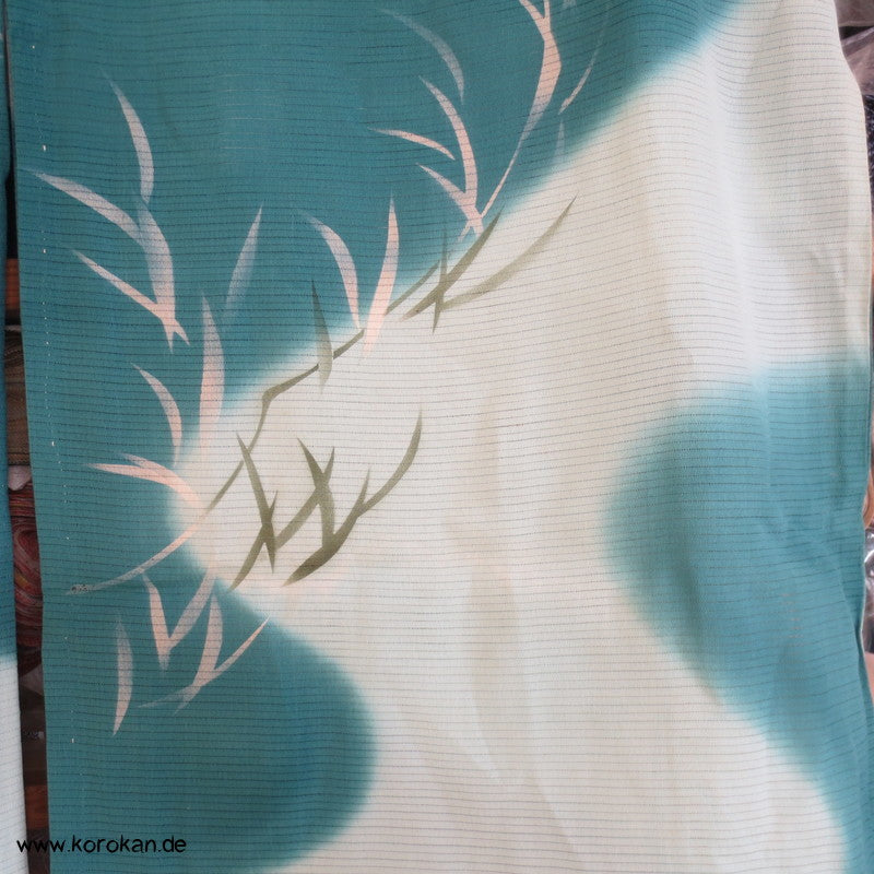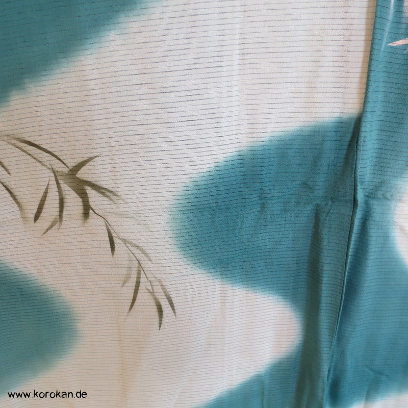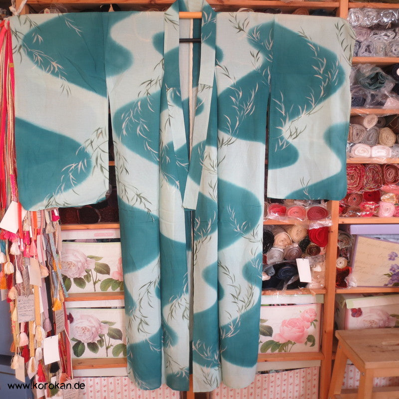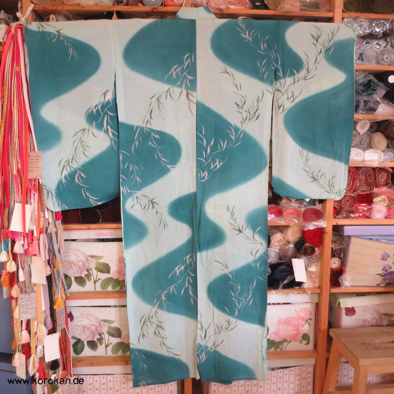 türkises Flussmuster mit Bambus Hitoe Rho Kimono