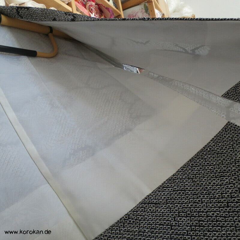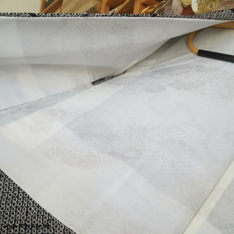 Vintage Haori Kimono Jacke Full Shibori überlappende Schneeflocken, oberem Damastfutter mit Chrysanthemen aus Synthetik