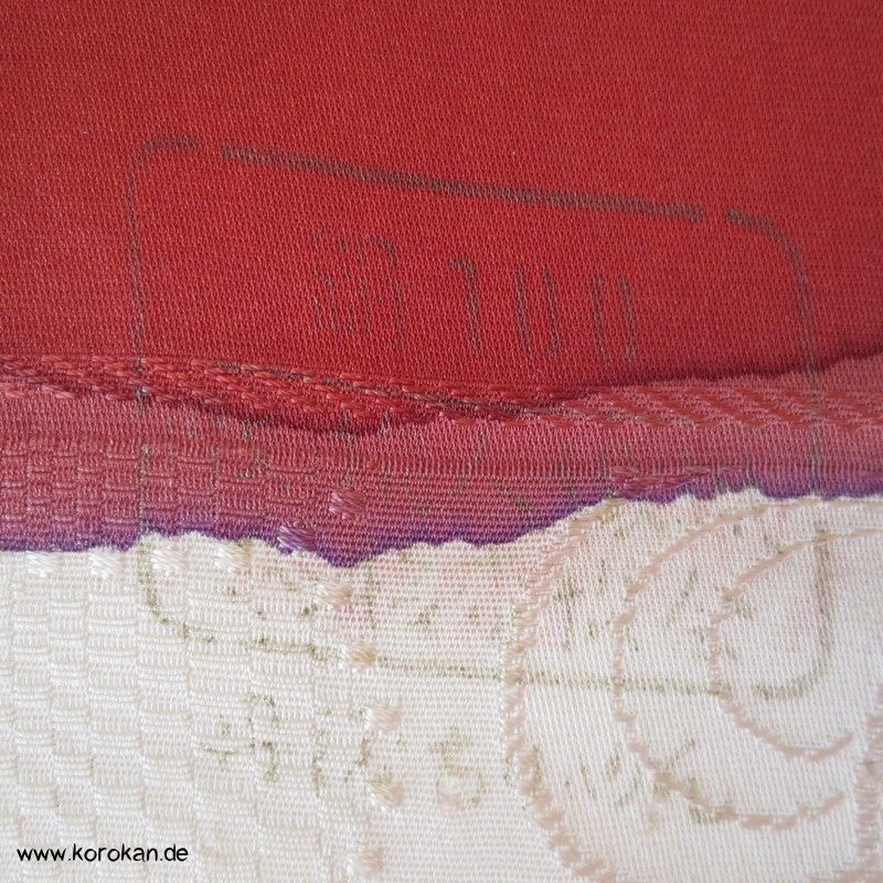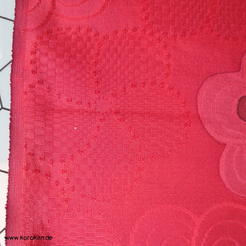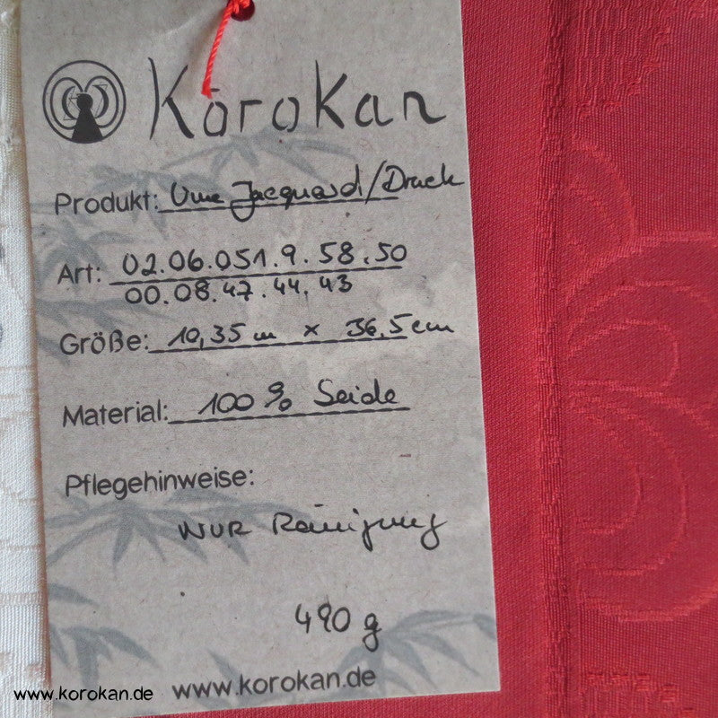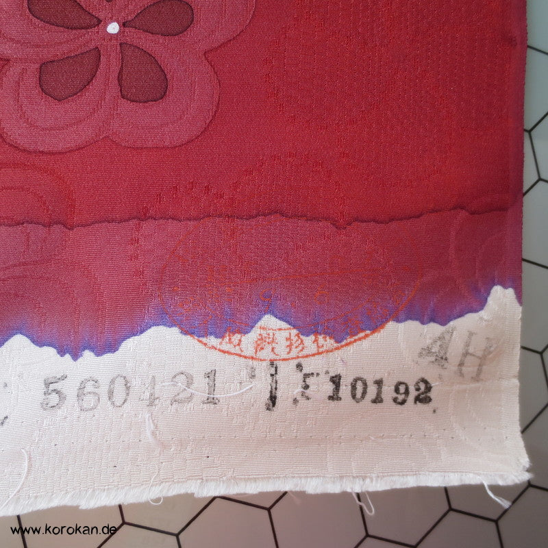 Vintage unbenutzte Kimono Seiden Stoffrolle Umeblüten gewebter Seidendamast mit teils nachgemalten Webmustern auf einem kräftigen Rot