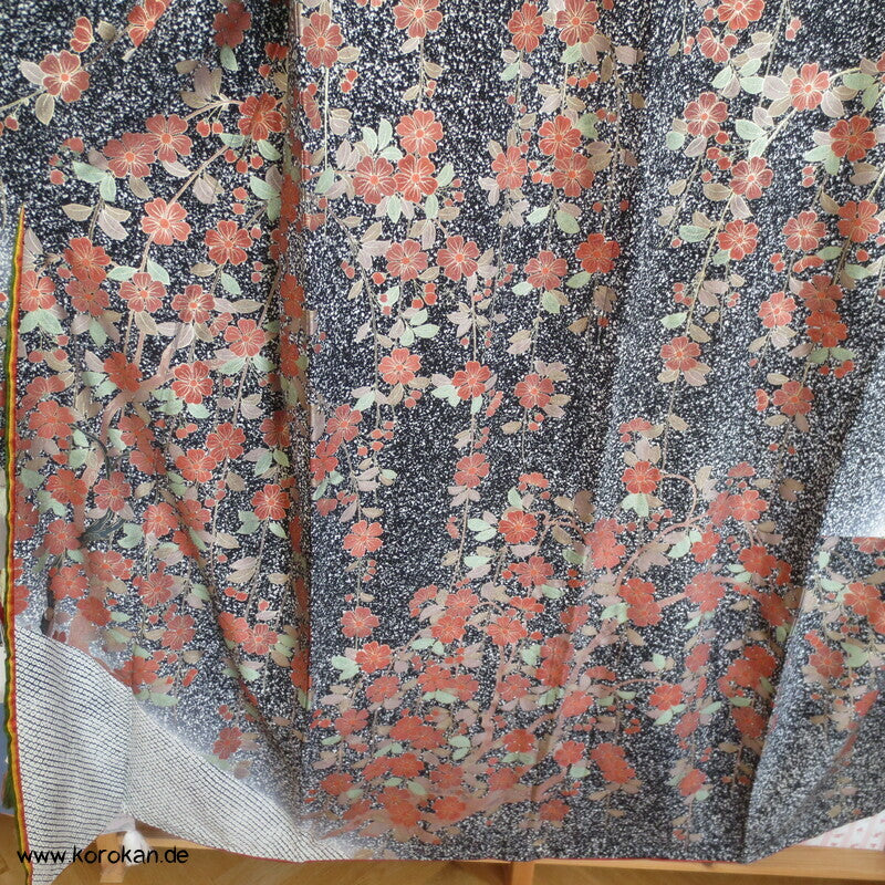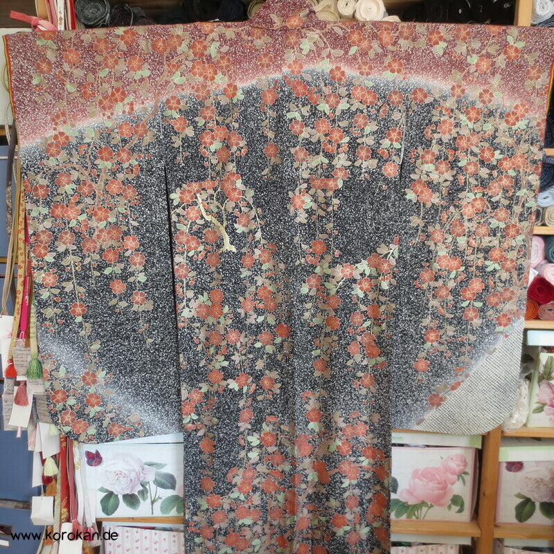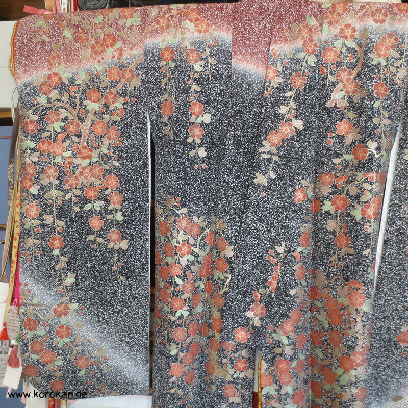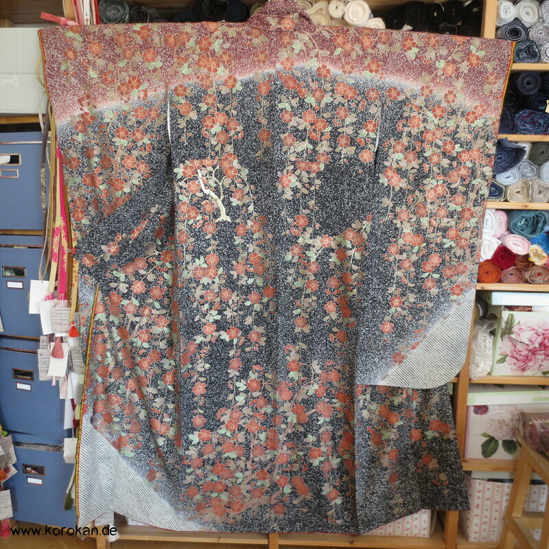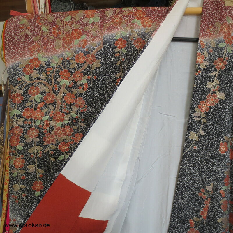 Furisode Seidencrepe Kimono Japan Umeblüten in der Nacht