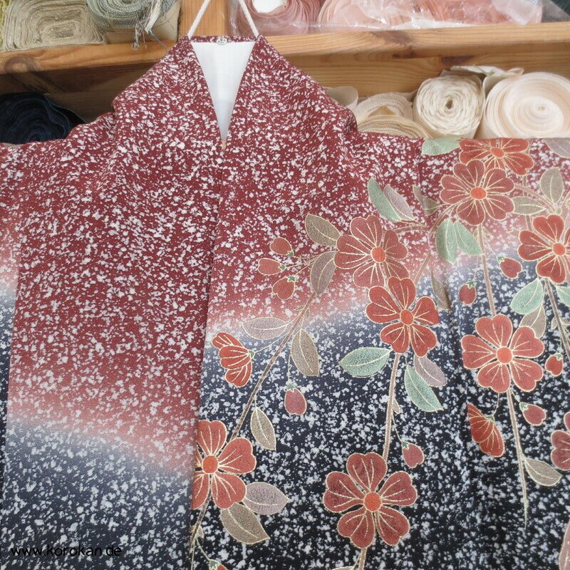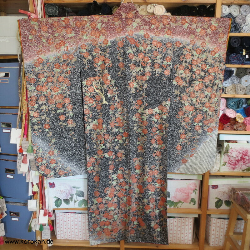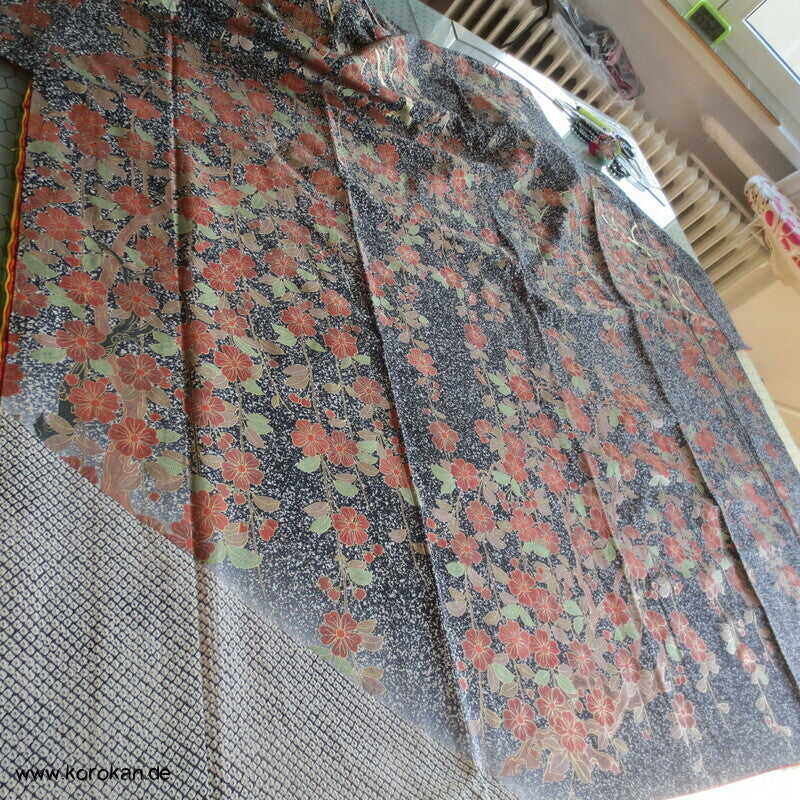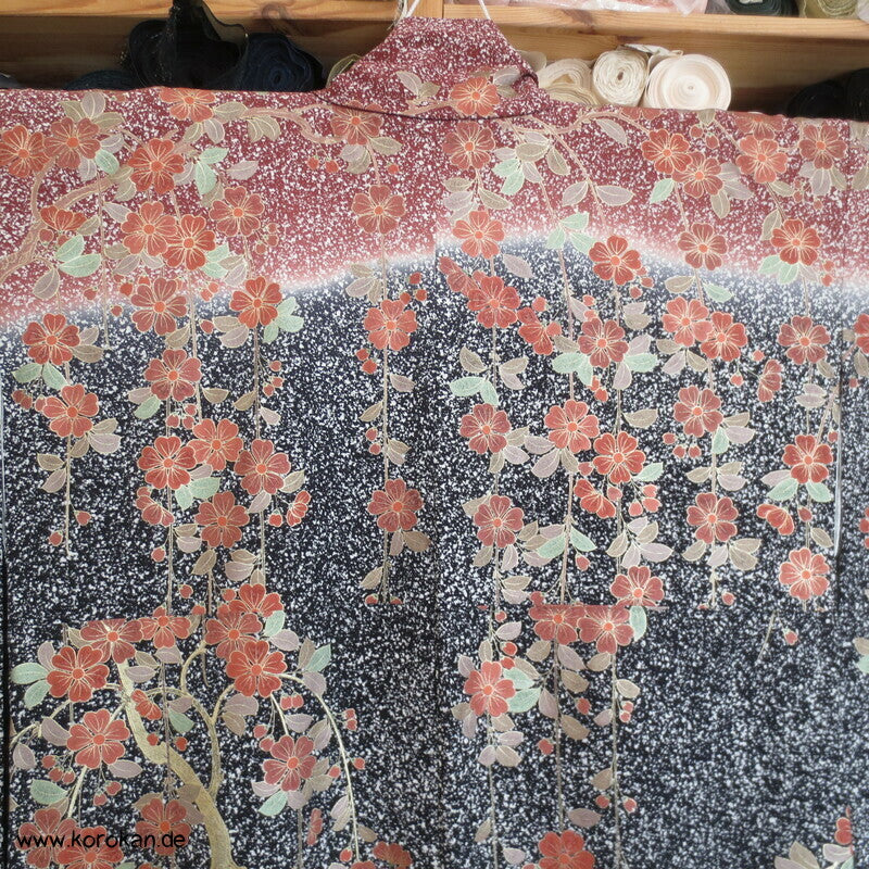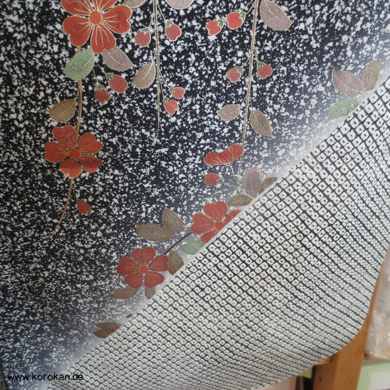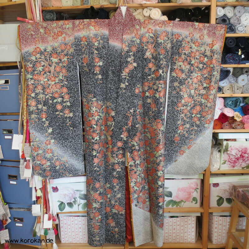 Furisode Seidencrepe Kimono Japan Umeblüten in der Nacht