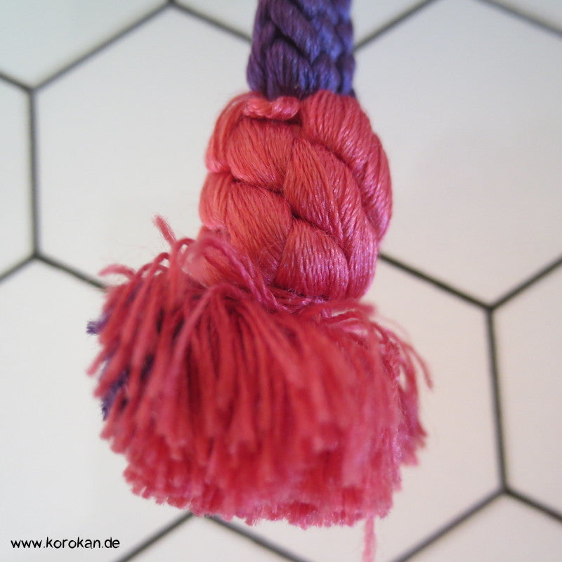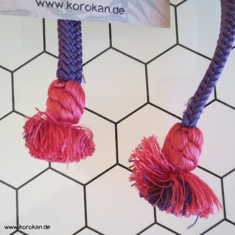 japanischer Flecht Seiden Obijime lila mit rosa mit Knubbel über den Troddeln