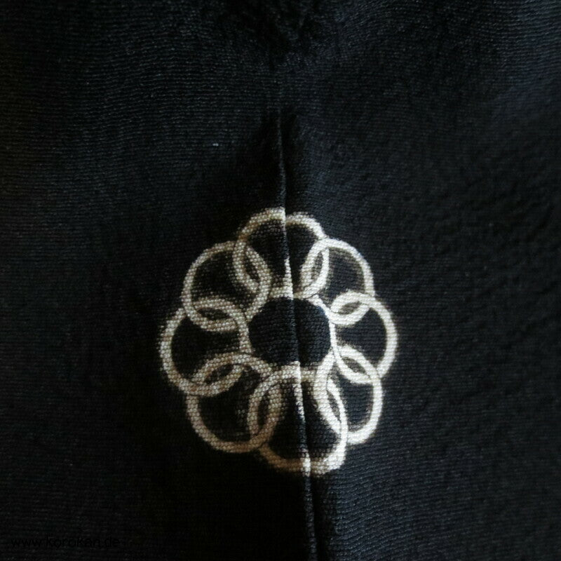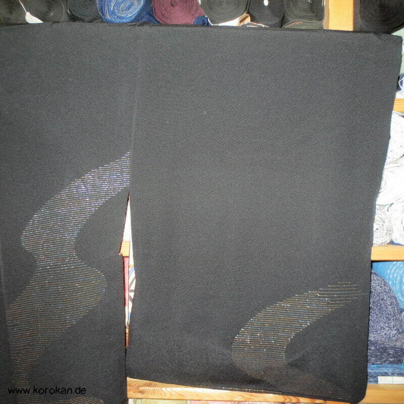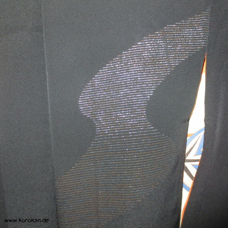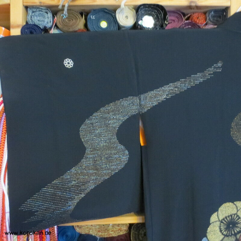 Vintage, antiker Haori Kimono Jacke aus feiner, schwarzer japanischer Seidenbrokat Blumenkugeln und silber Fluss und Urushi und Gold, Blüten etc..., oberen hellen Seidenfutter, mit Himo