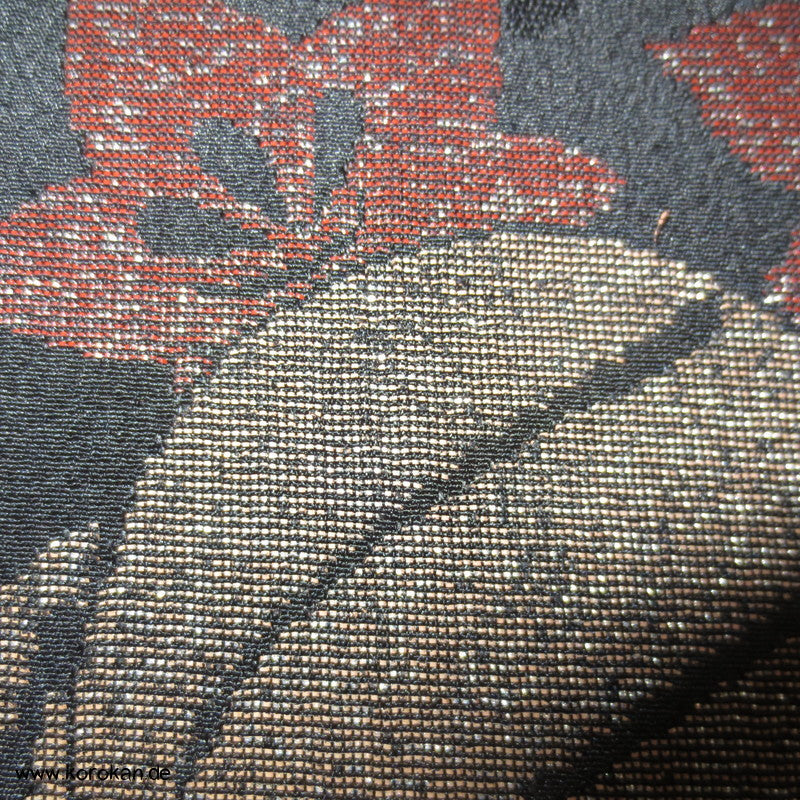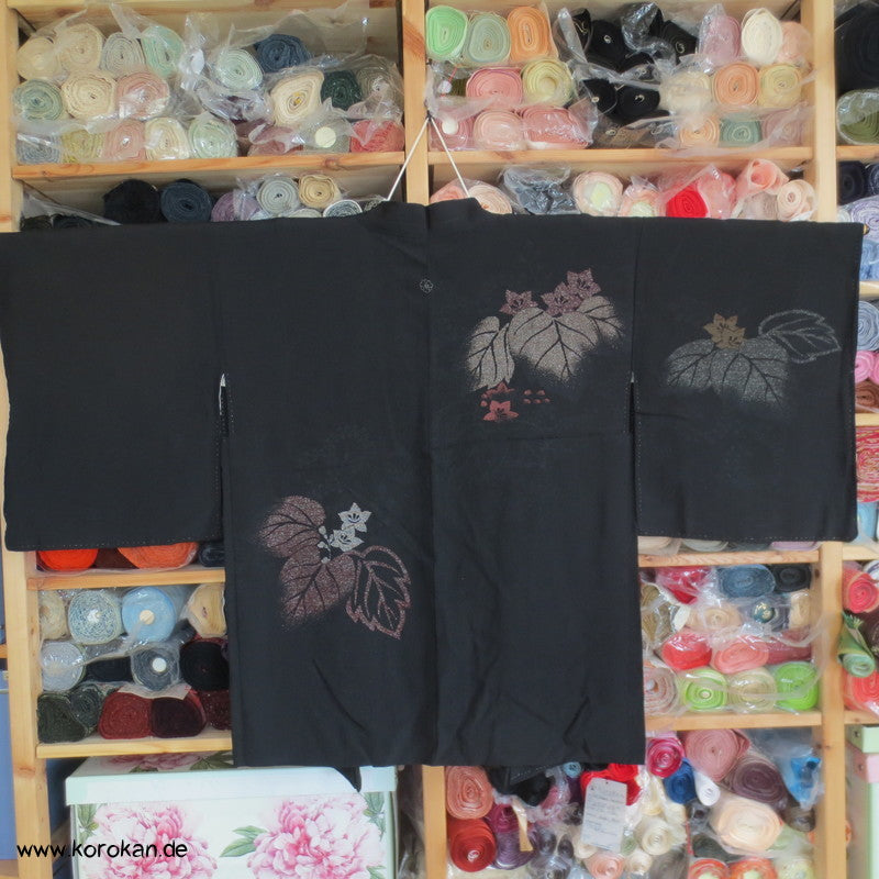 Vintage, antiker Haori Kimono Jacke aus feiner, schwarzer japanischer Seide Brokat mit gewebten Paulownia Urushi und Gold, oberem hellen Phönix Seidendamastfutter