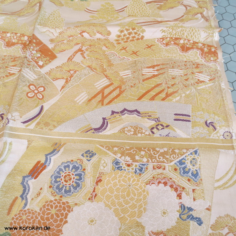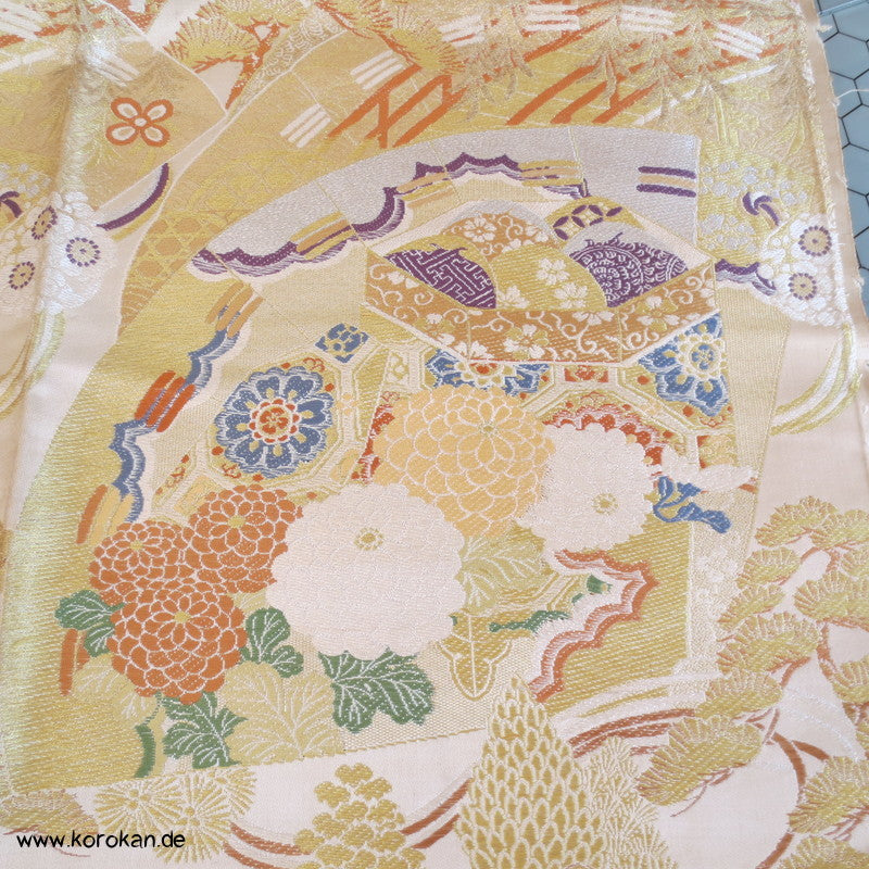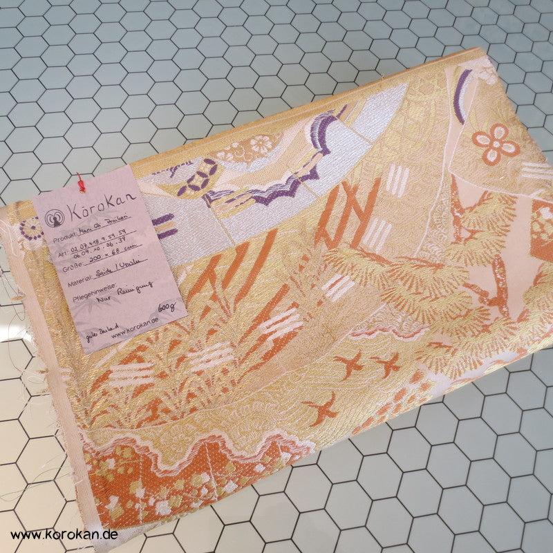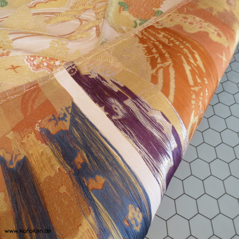 japanischer Araihari aufgetrennter antiker Obi - nur noch ein Stoffrest - ein Teil ist schon eine Schwerthülle geworden.