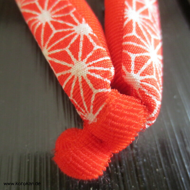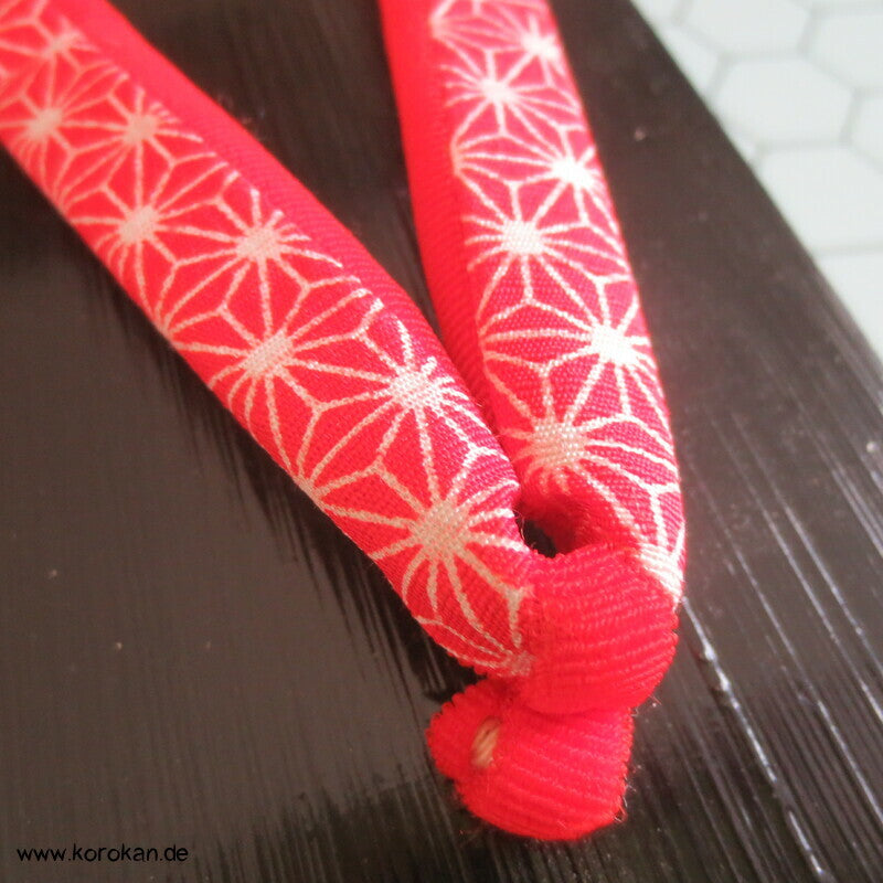 Vintage Geta Zehenstegsandalen - leichtes lackiertes Holz, rote Asanoha Stoffriemen
