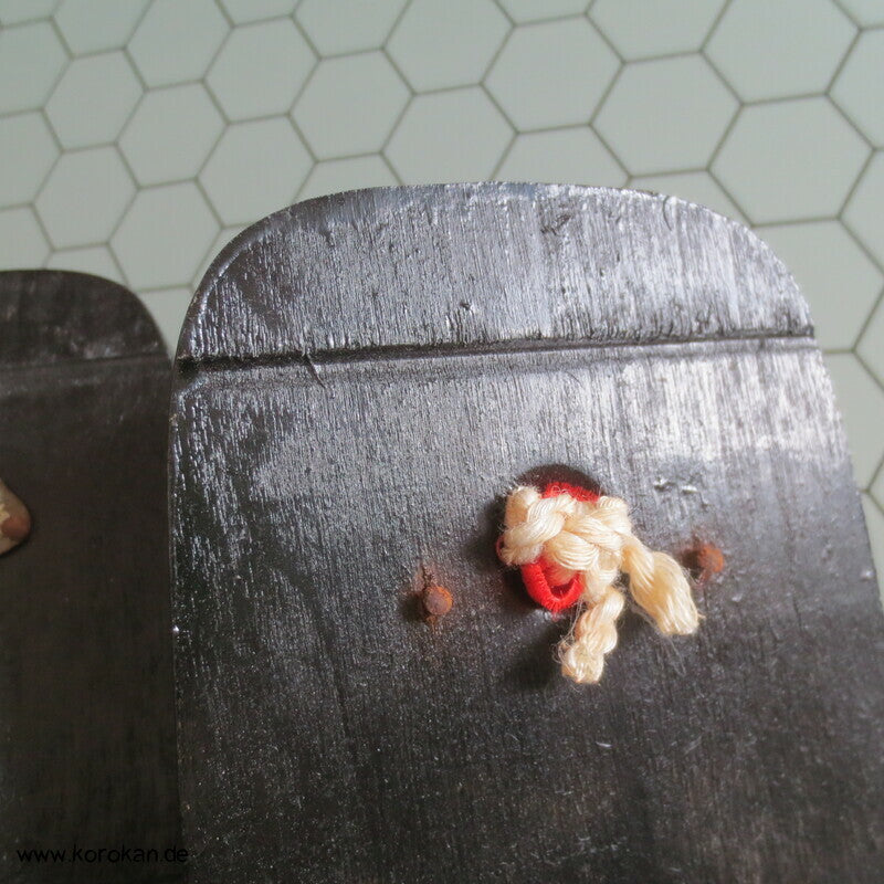 Heile, anscheinend unbenutzt, älter, eine Kappe für die Riemen fehlt.