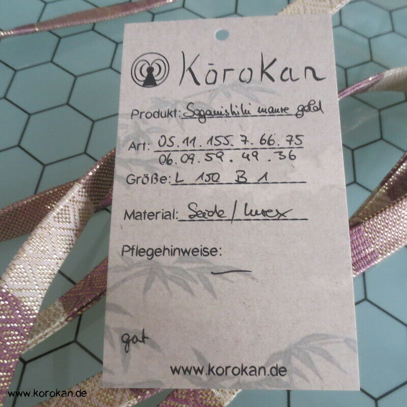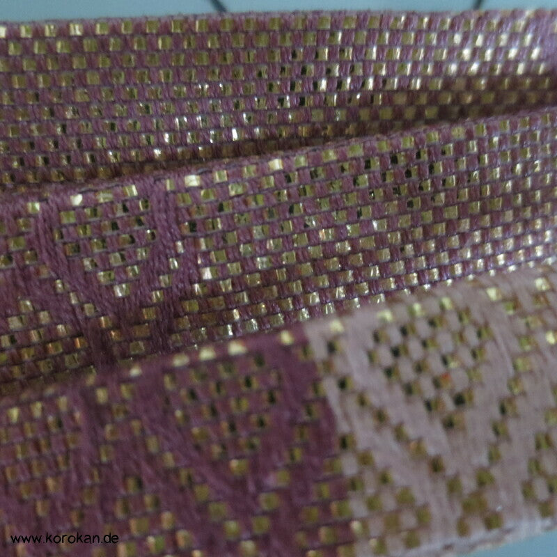 Vintage Saganishiki Obijime, Seidenbrokat, lila gold