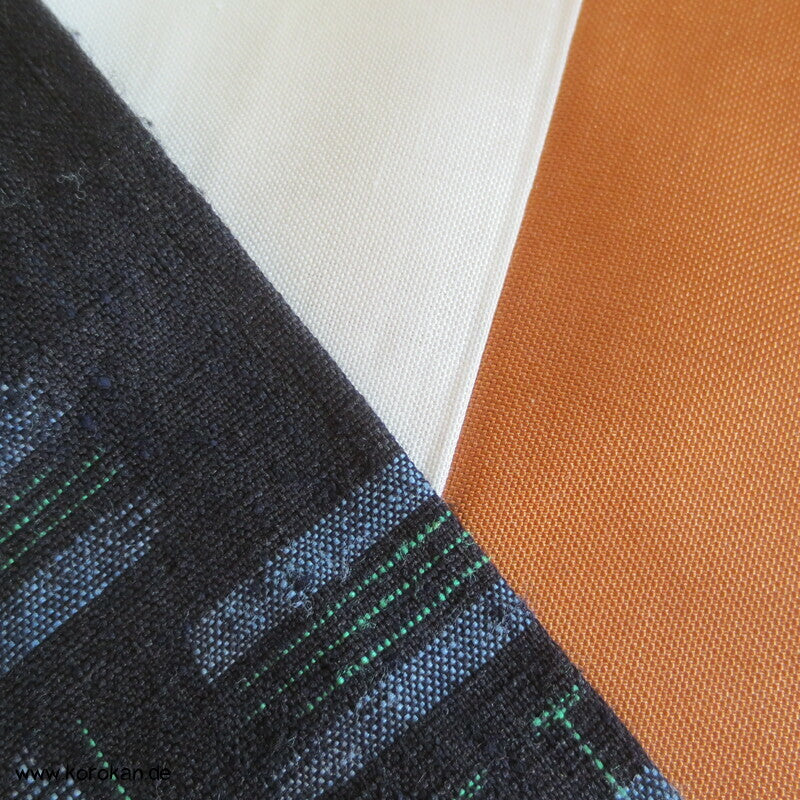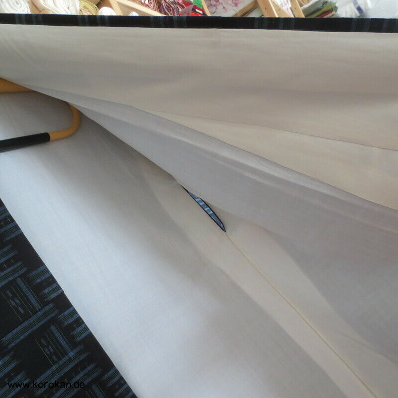 Vintage Kasuri garngefärbtes Webnuster Gitterkaro Tsumugi Seide Komon, oberes Futter hell, unteres Hakkake Futter kupferorange Honan Seide