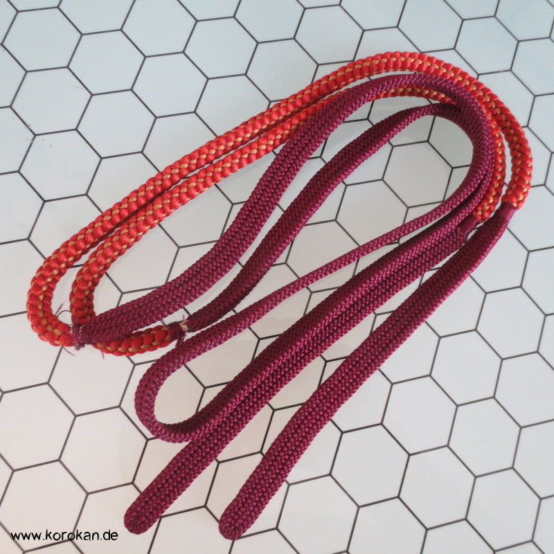 Vintage Seiden Kordel Obijime, weinrot hellrot, Teilung, ohne Troddeln mit flachen Enden