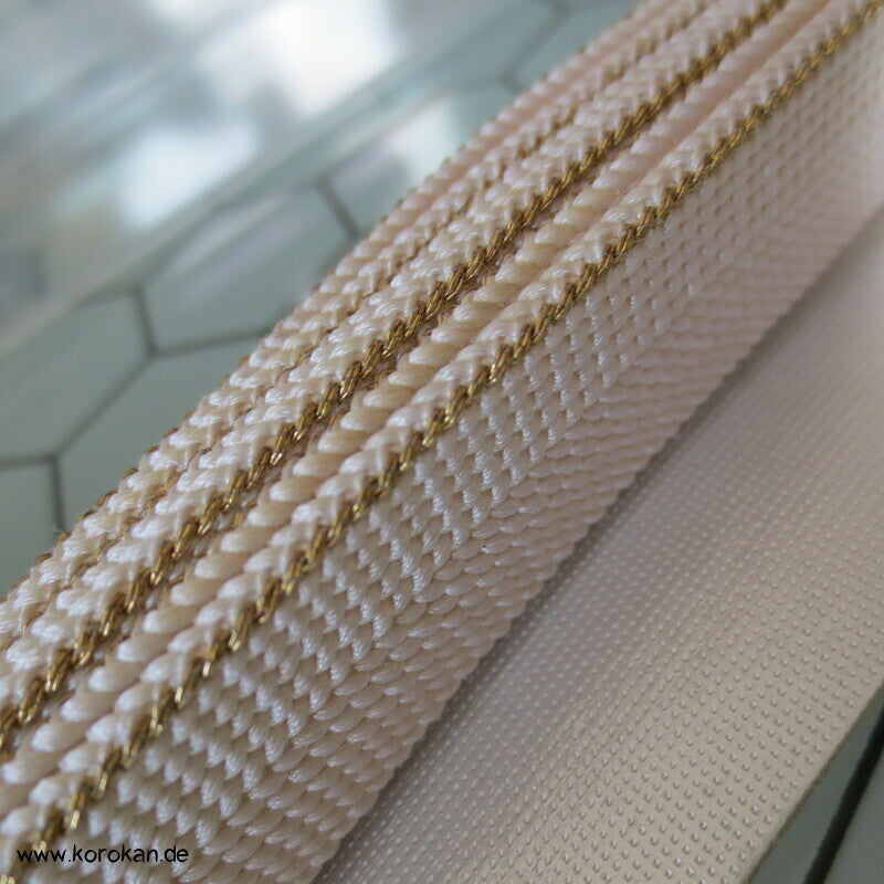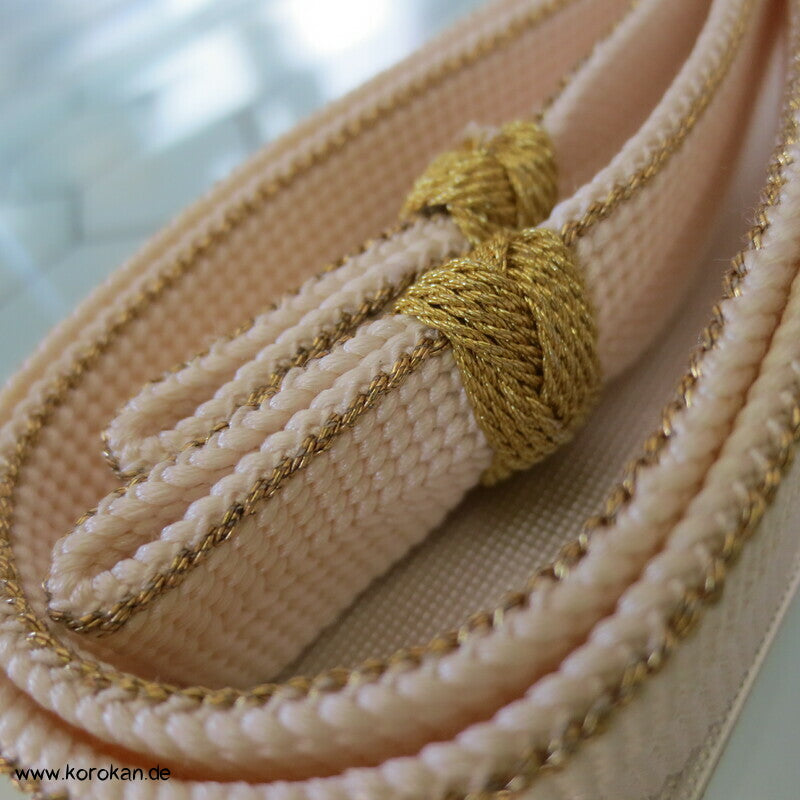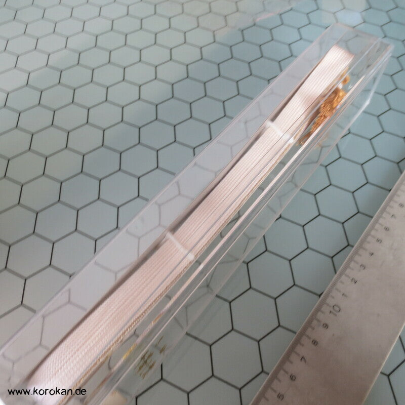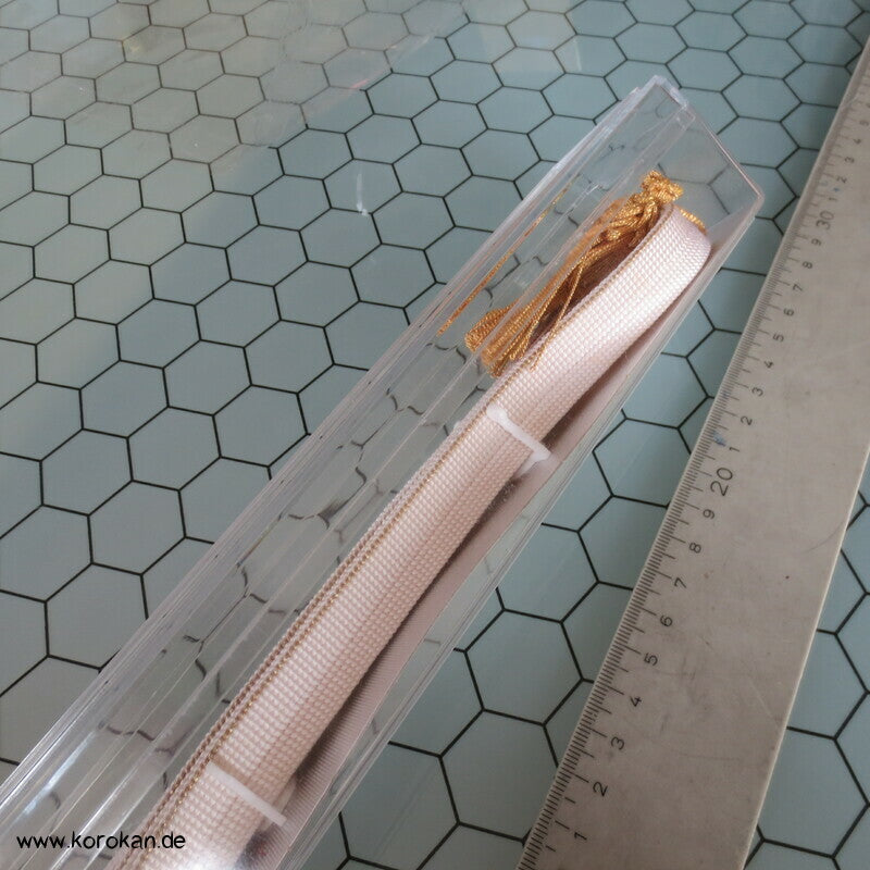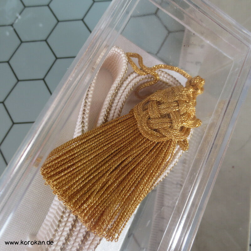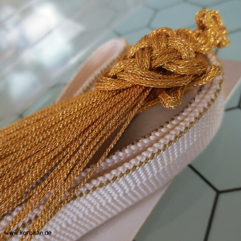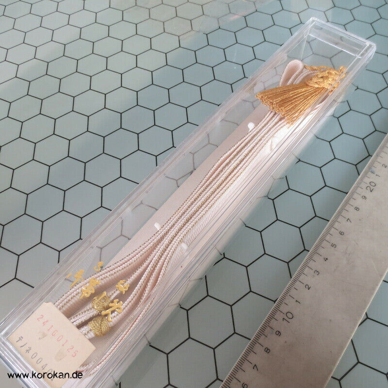 flacher Obijime weiß mit gold, Troddeln und Glücksknoten in gold in Box