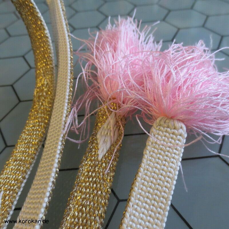 weiß gold mit rosa Troddeln Obijime, Seide / Lurex