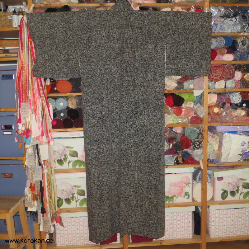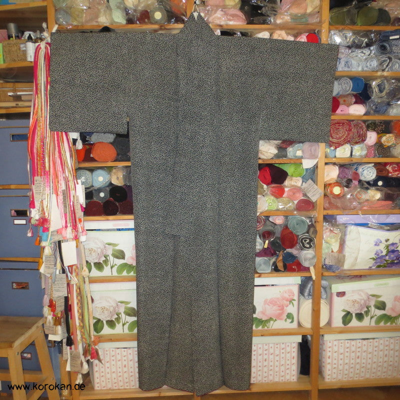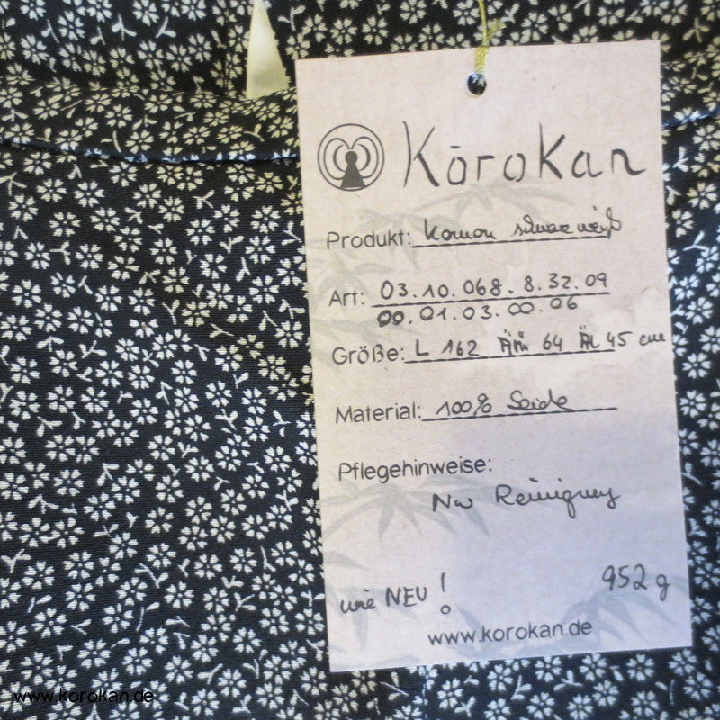 weiße Blümchen auf schwarz Seidencrepe, Komon Alltagskimono