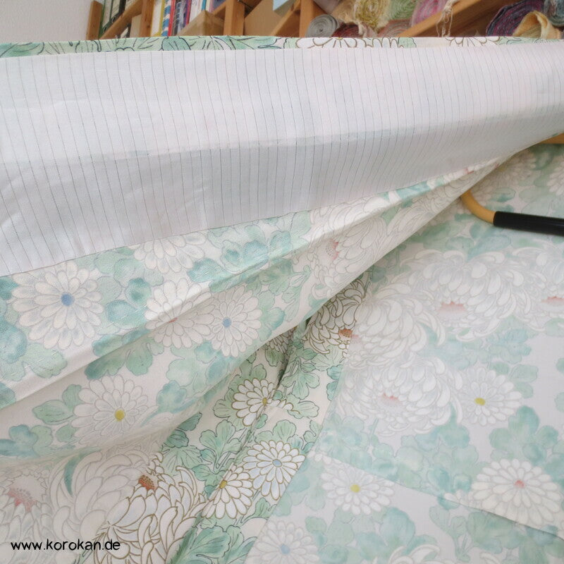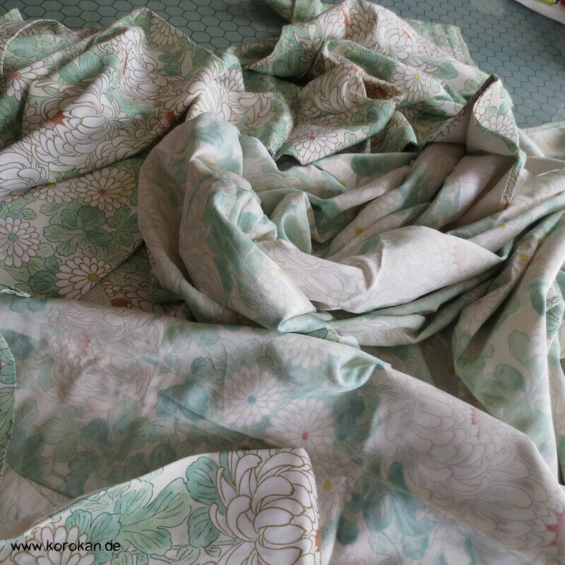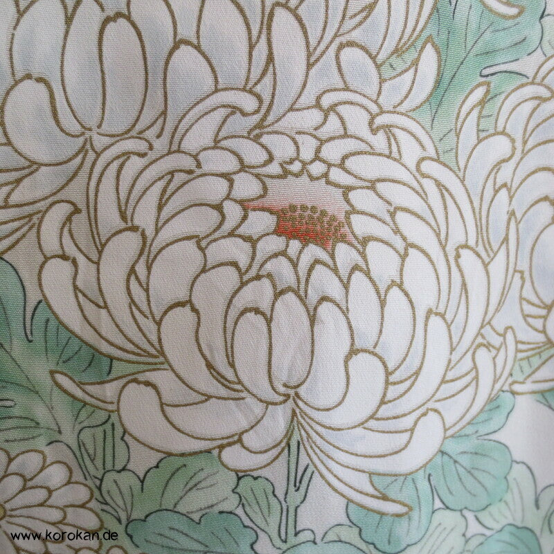 weiße Chrysanthemen Hitoe Kimono Seidencrepe