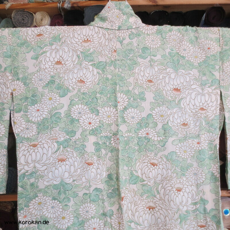 Vintage Hitoe Seidencrepe Kimono, Chrysanthemen dicht an dicht