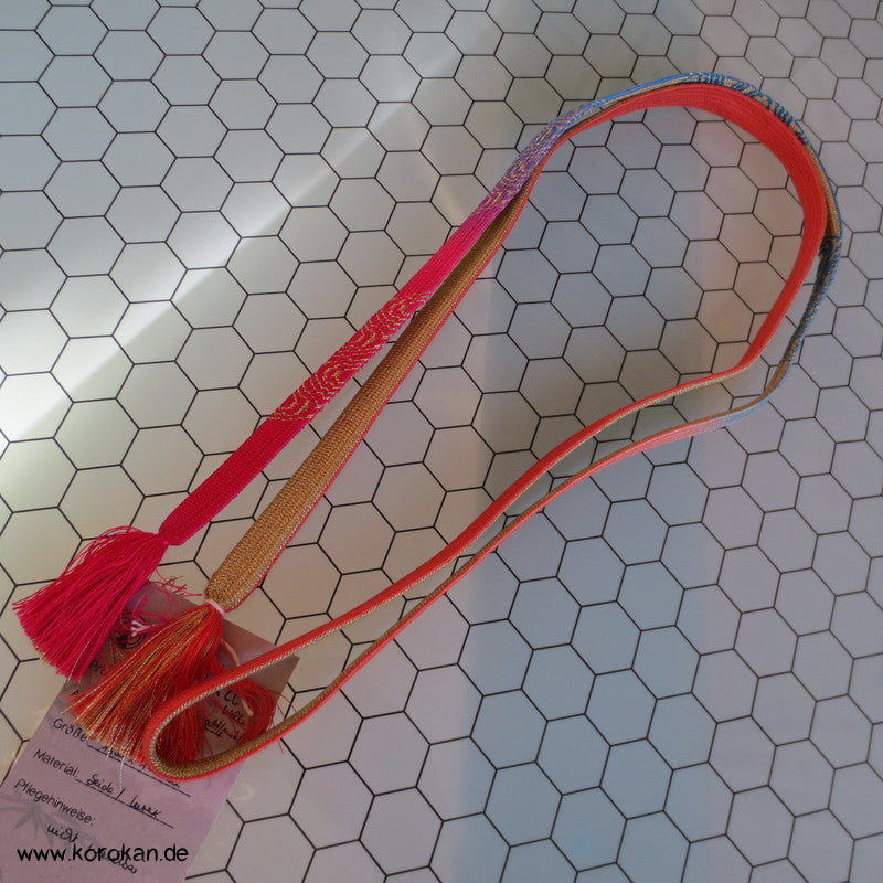 flacher Obijime Wellen in pink blau gold wechselseitige Flechtung.