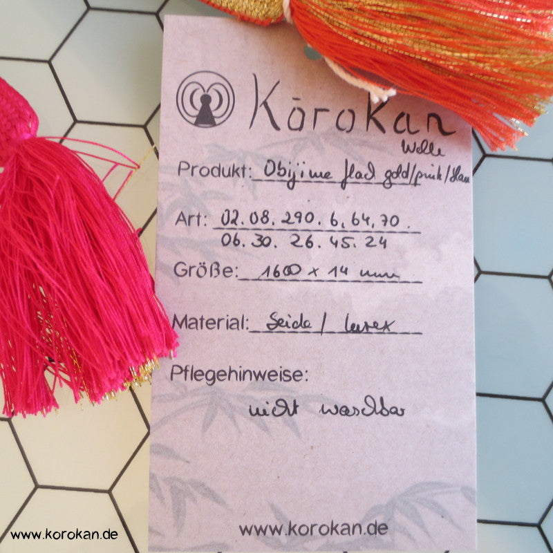 Welle, gold, pink, blau Obijime, geflochten, flach