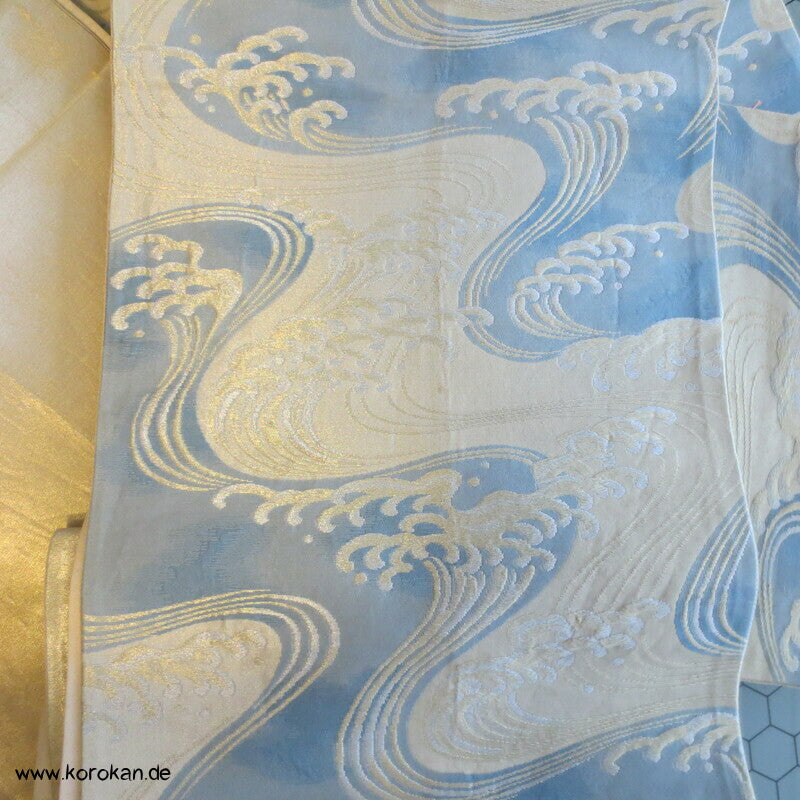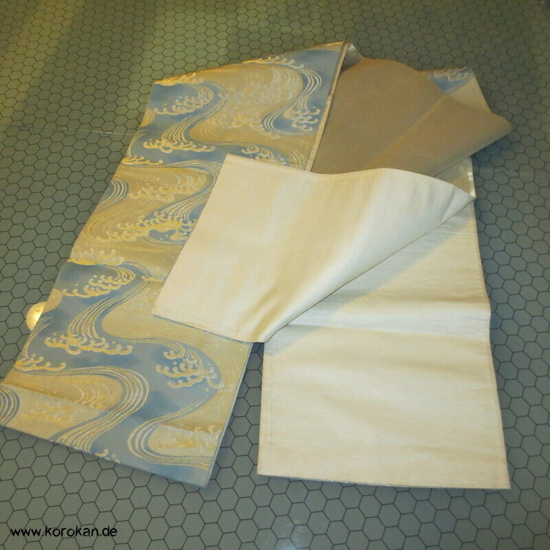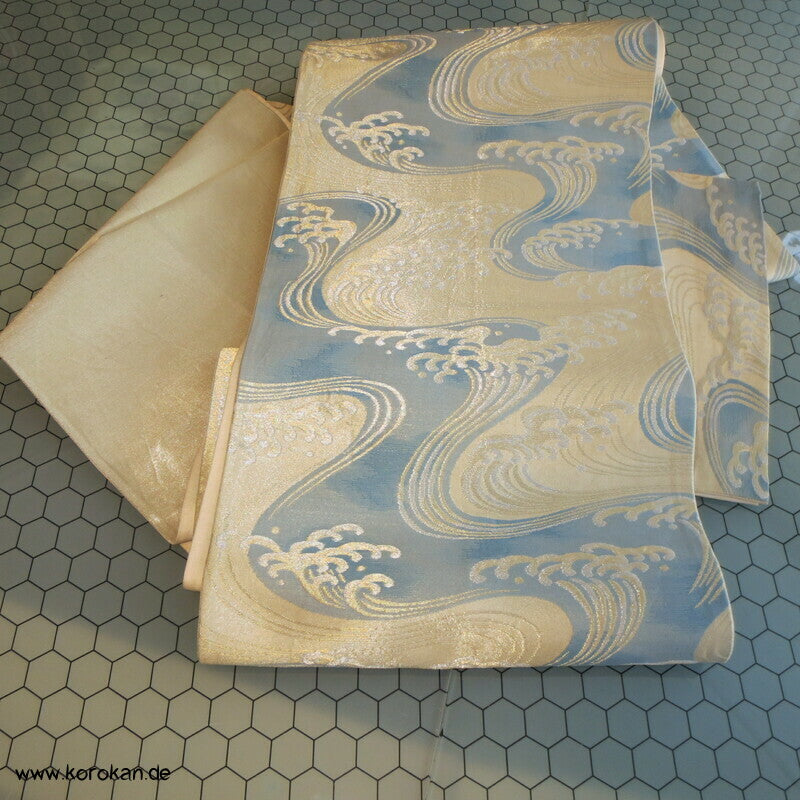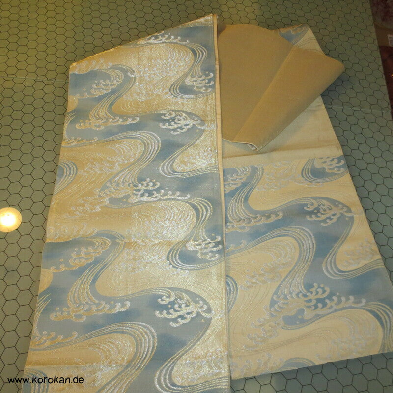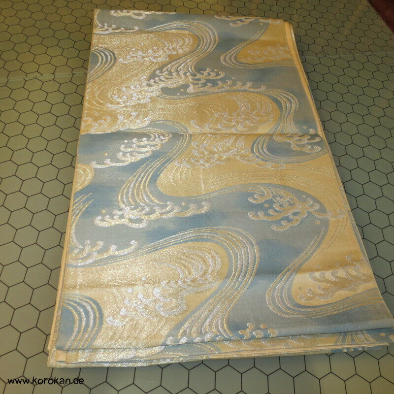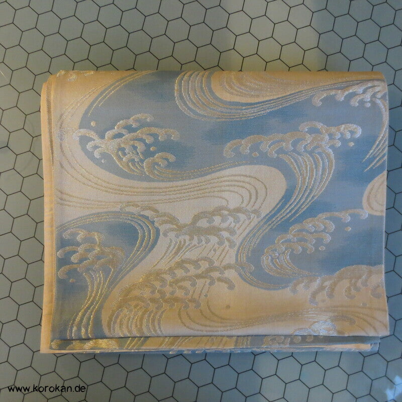 Wellen, spritzende Gischt Seidenbrokat Fukuro Obi Kimonogürtel