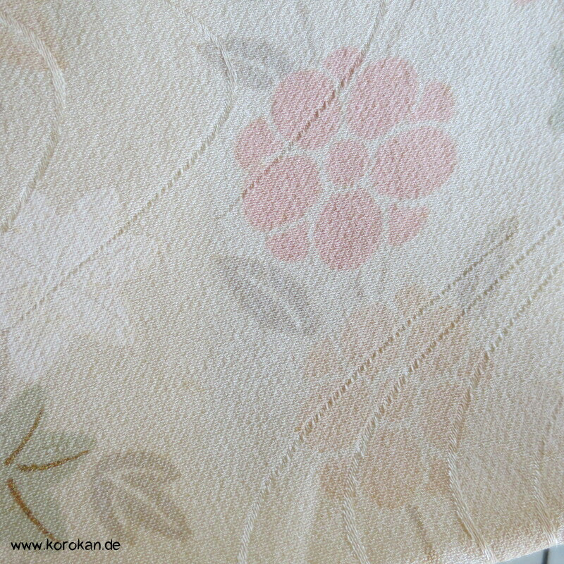 Wolken mit Blüten, Flusswellen Rinzu Damast Kimono Seide
