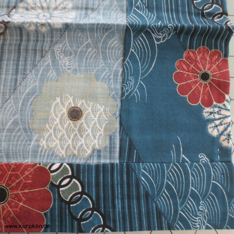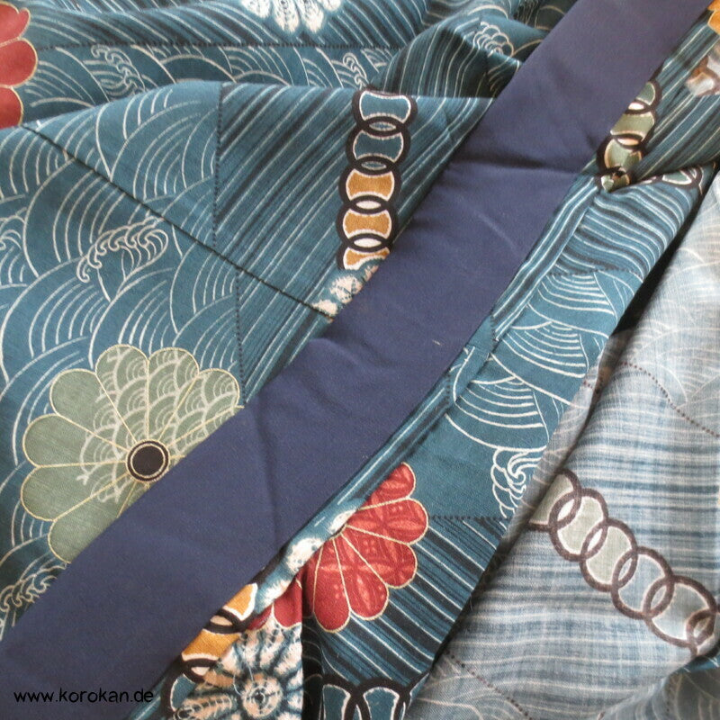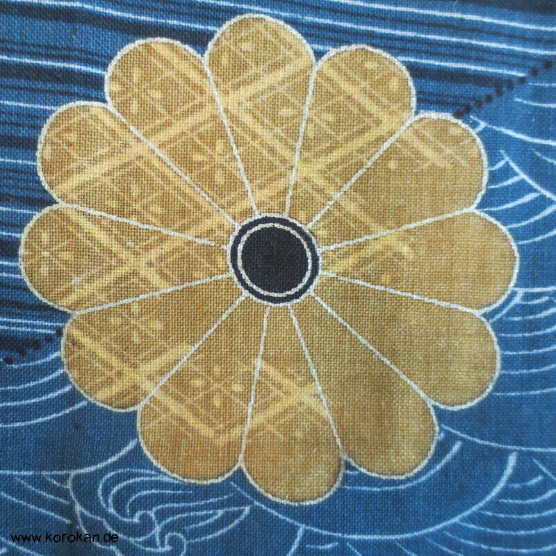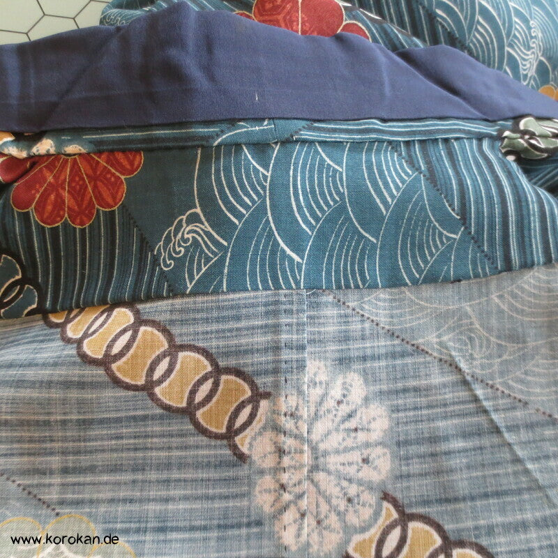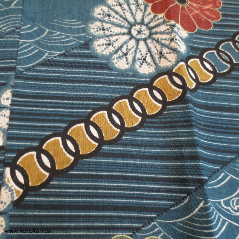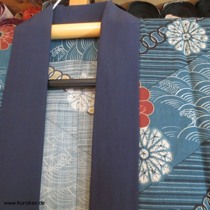 Vintage Männer Juban Unterkimono aus feinem weichen Woll Musselin bedruckt mit diagonalen Streifen mit Segaiha Wellen und Kiku Blüten etc.....