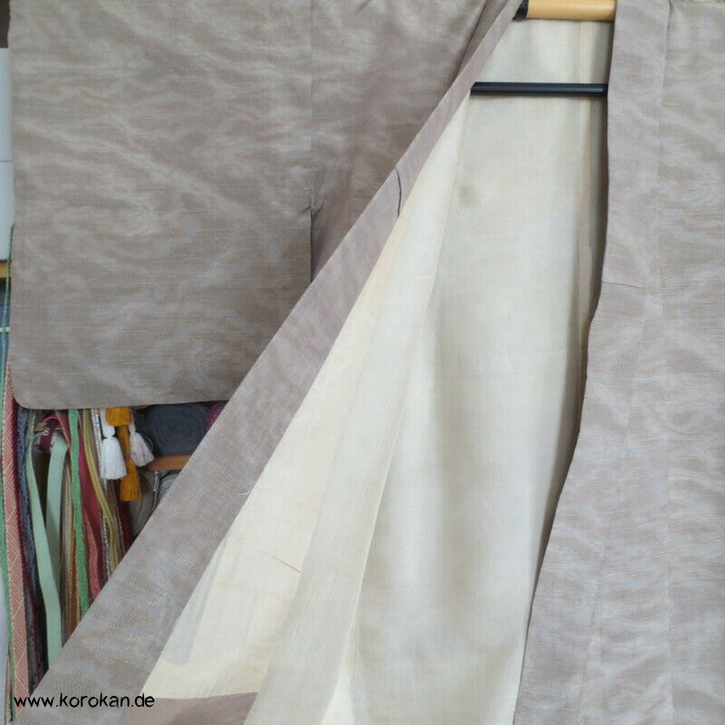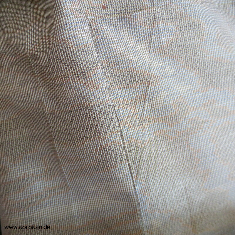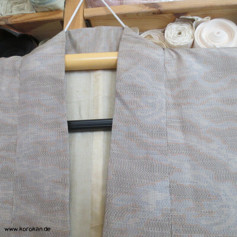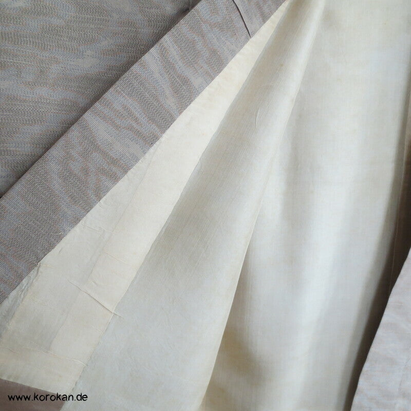 Vintage Kasuri garngefärbtes Webmuster Tsumugi Seide Komon, oberes Futter helle Seide, unteres Hakkake Futter Seide