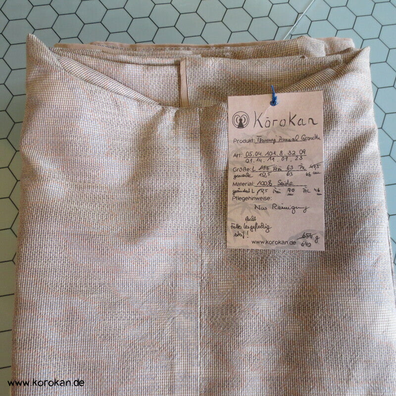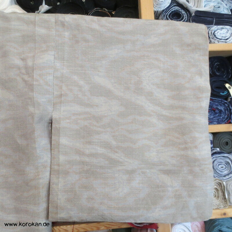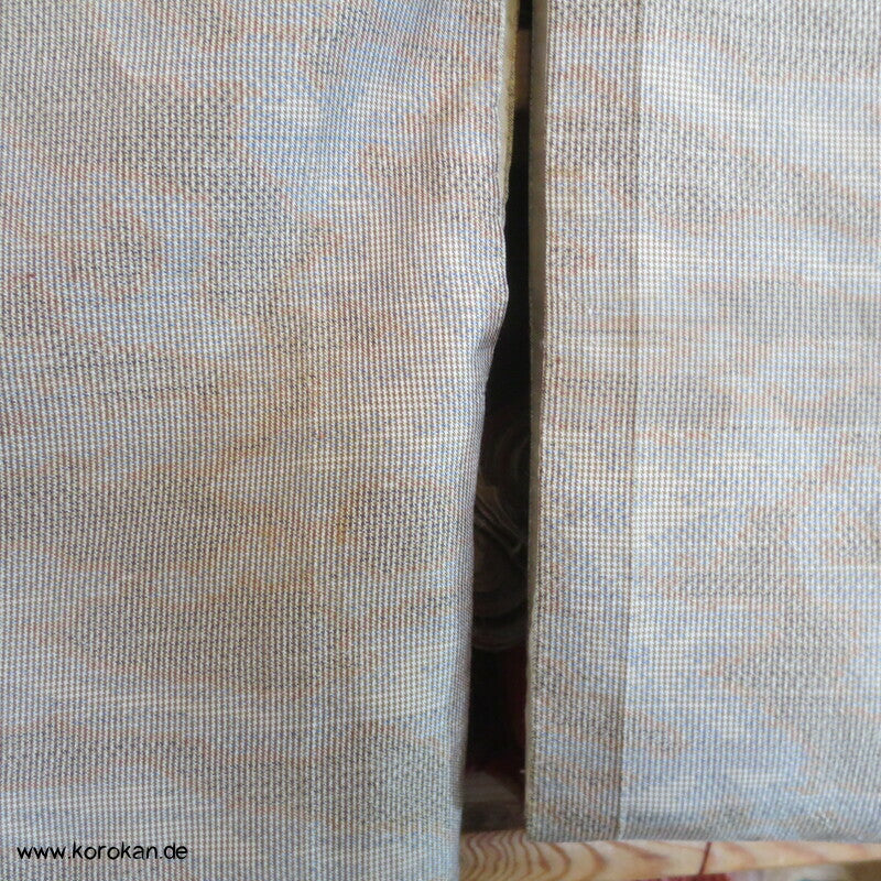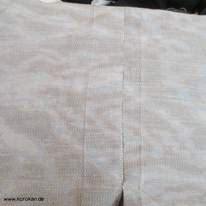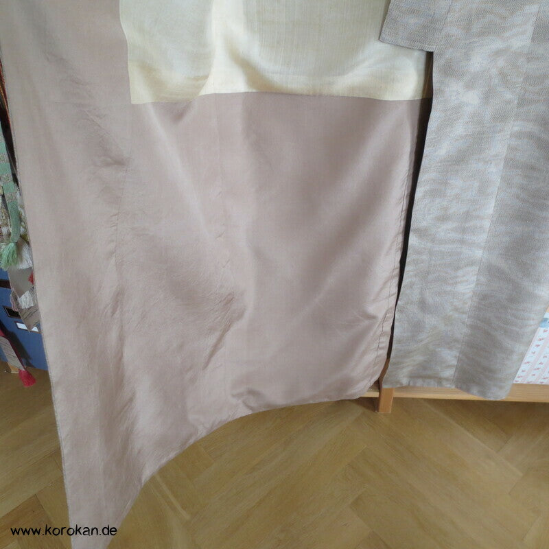 in der Berliner korokan Werkstatt gewaschen, Seiten aufgetrennt und auf maximale Breite erweitert, jetzt ein sauberer XXL Kimono, man kann die alten Nahtlinien zwar sehen, spielt im Muster aber kaum eine Rolle