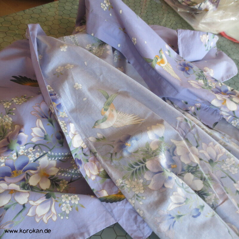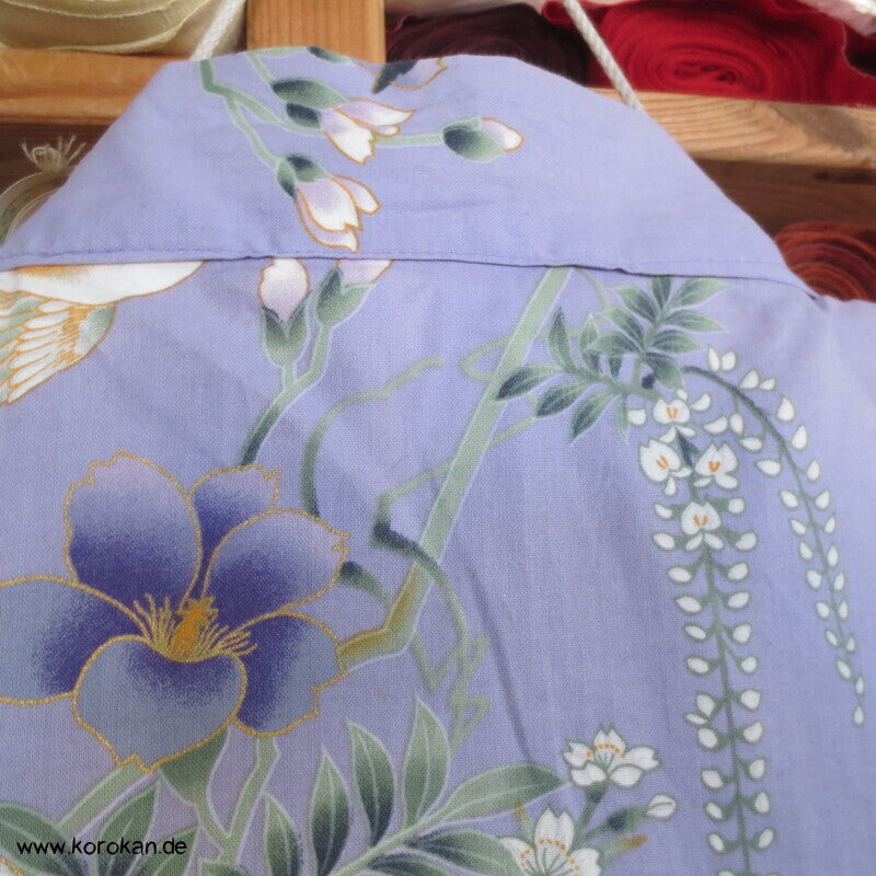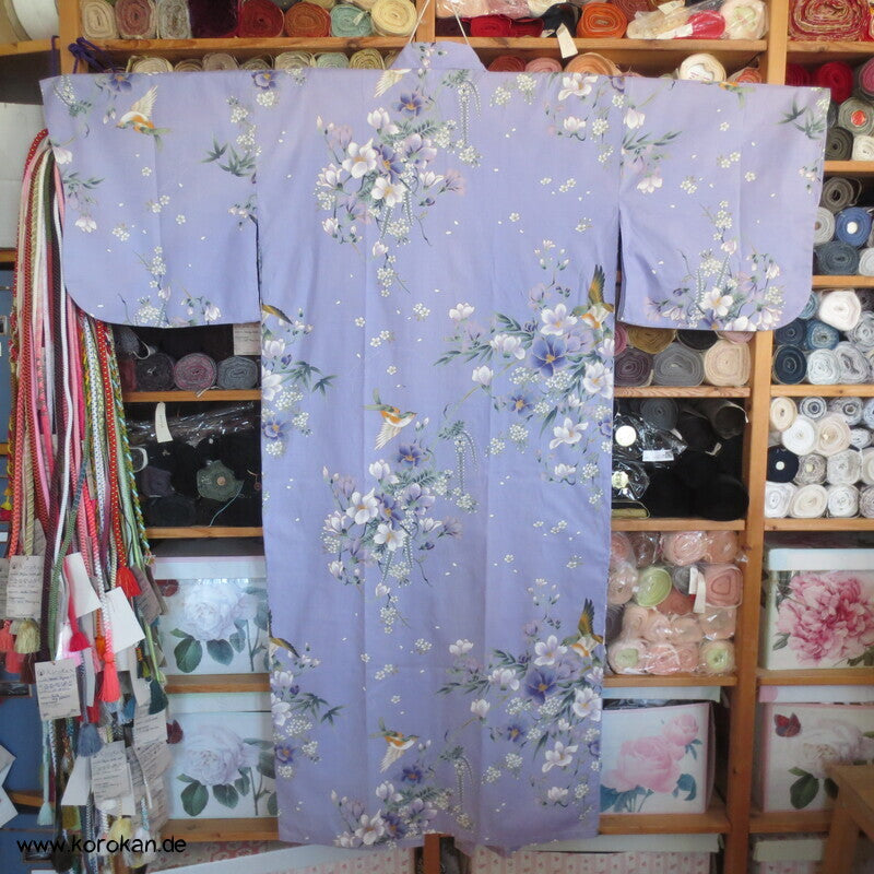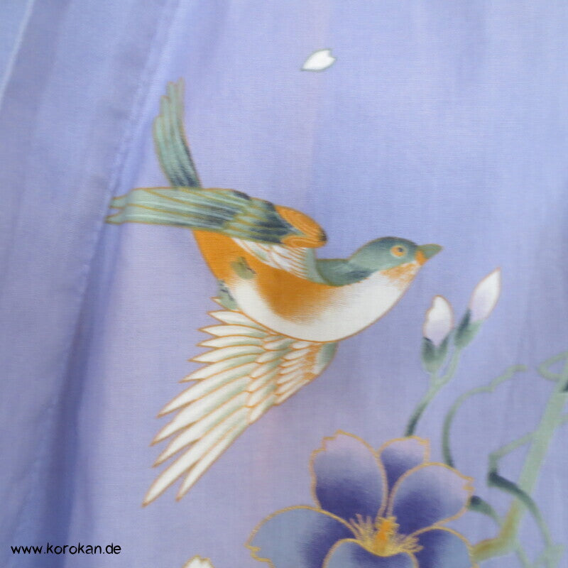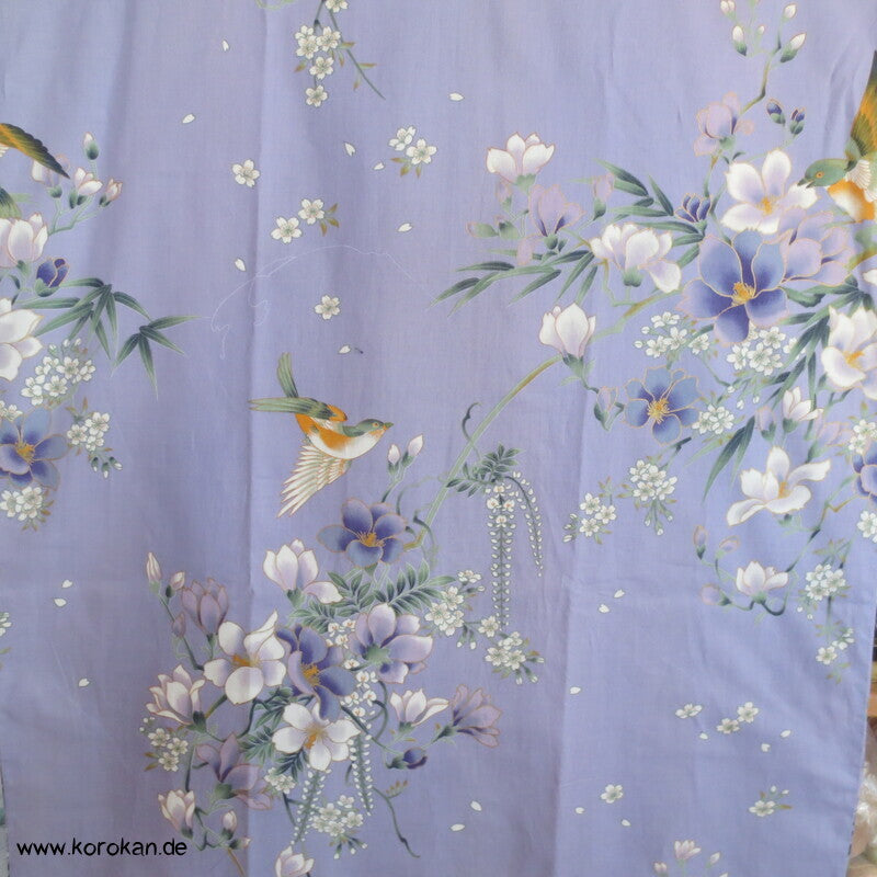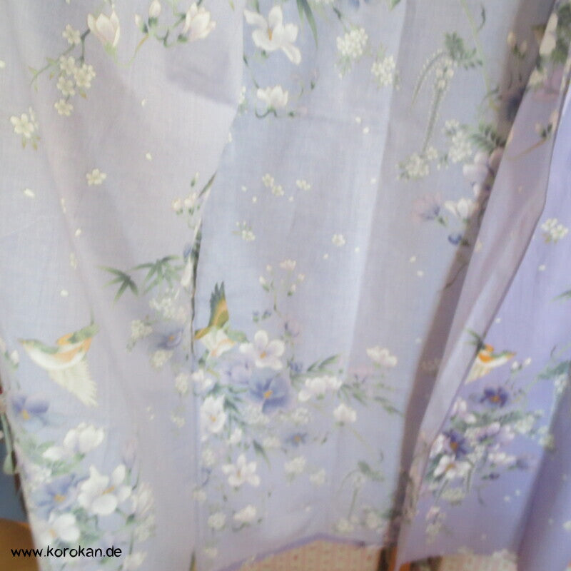 Yukata Baumwoll Kimono, Blumen und Vögel auf flieder