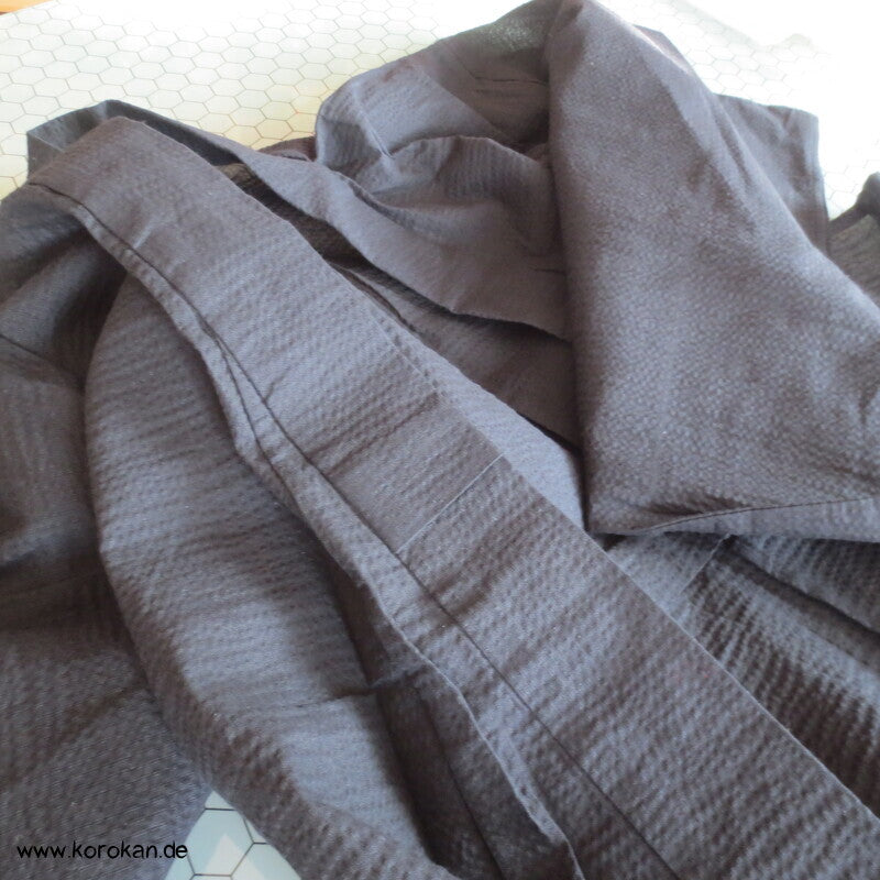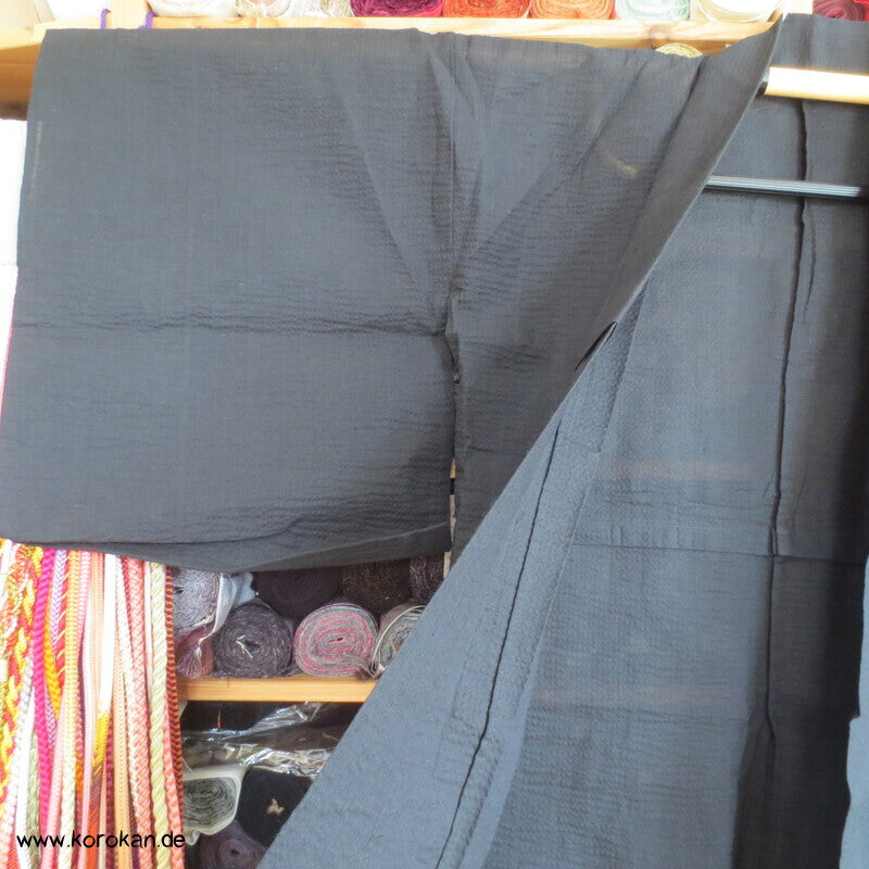 Vintage anscheinend unbenutzter Baumwoll Awa Shijira Streifenkrepp gewebter schwarzer Yukata Sommer Kimono