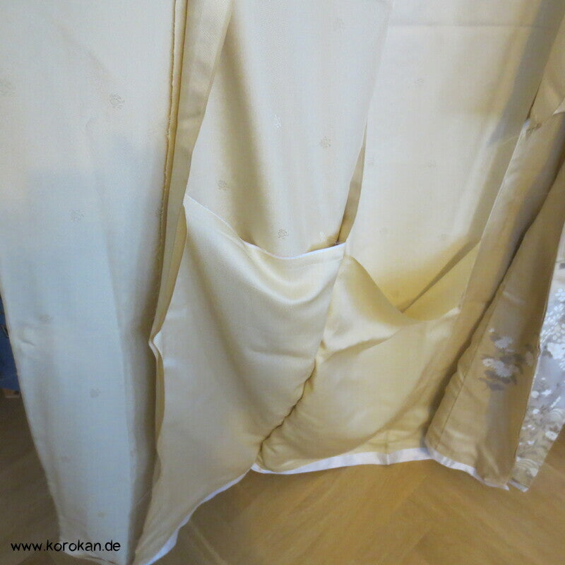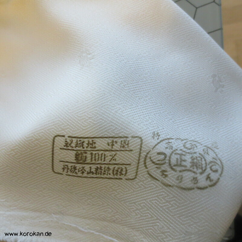 Ein 2 mm Miniloch vorne auf der Brust, also so nicht mehr für einen Kimono zu verwenden, aber sehr schönes Material für andere Projekte. Neu
