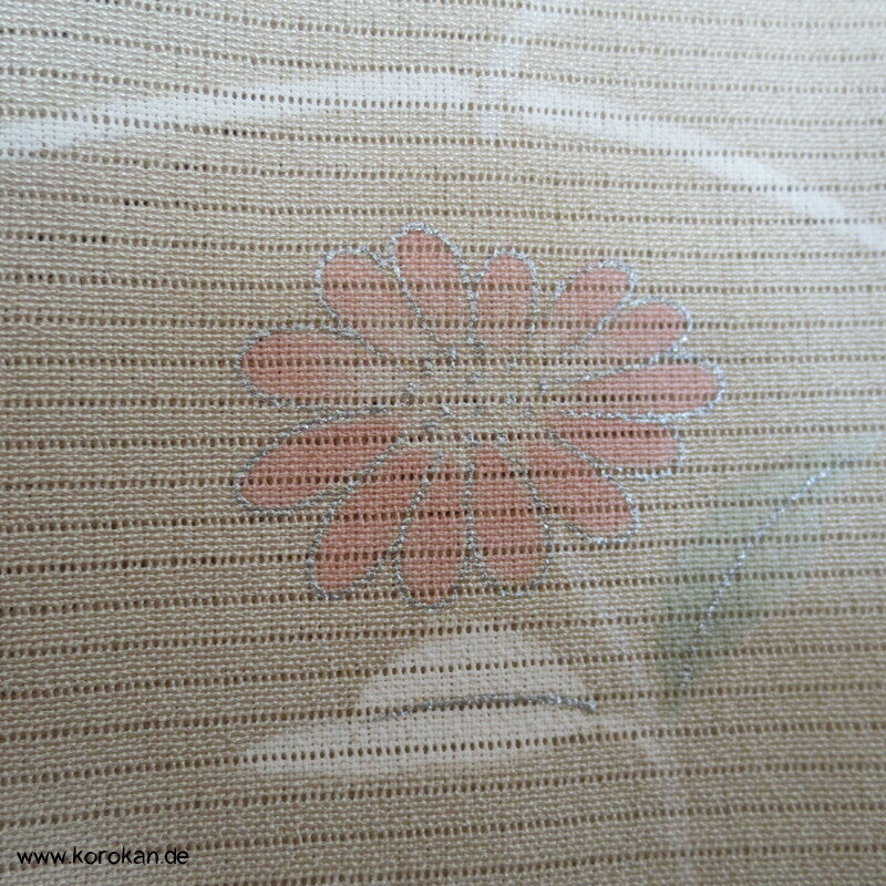 Vintagentiker Hitoe Rho Seide Kimono, zarte Blüten auf gebrochenem Kieselnaturgrau