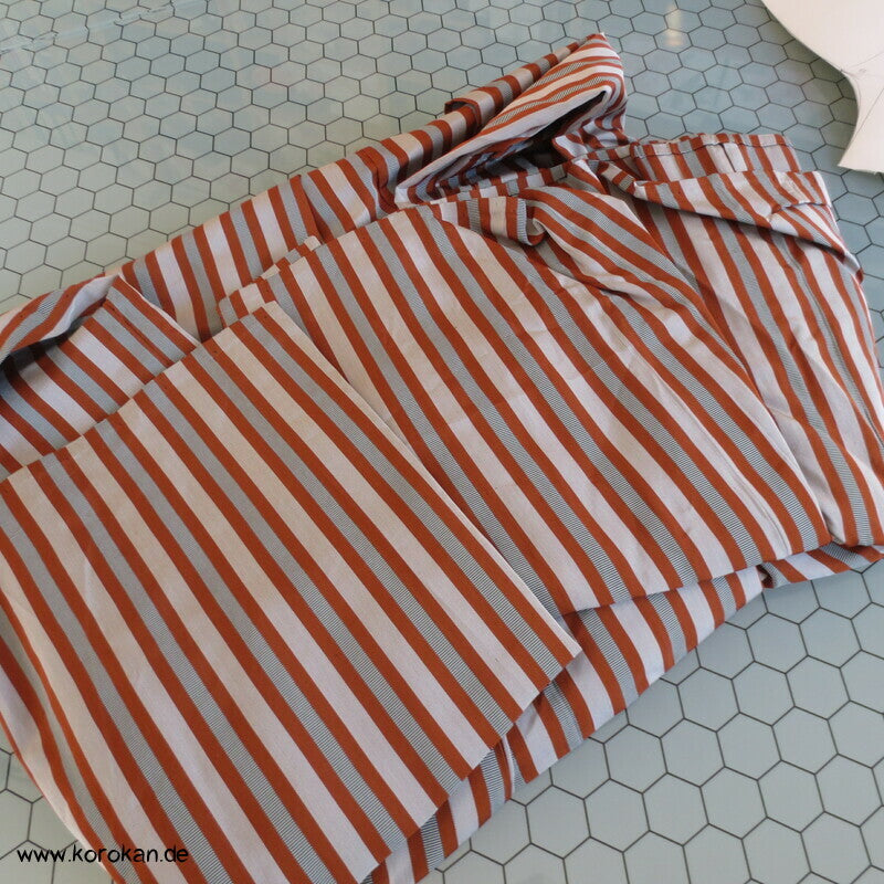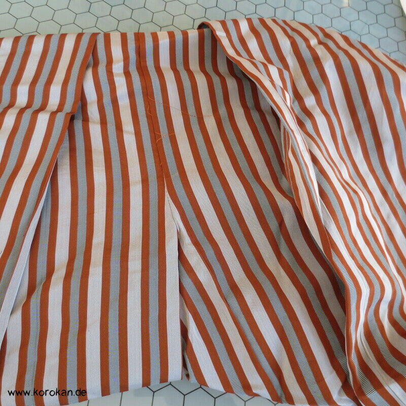 Vintage japanische Hakama Kimono Hose dicker zimt hellgrau gestreifter Seidenrips, Umanori Hosentyp
