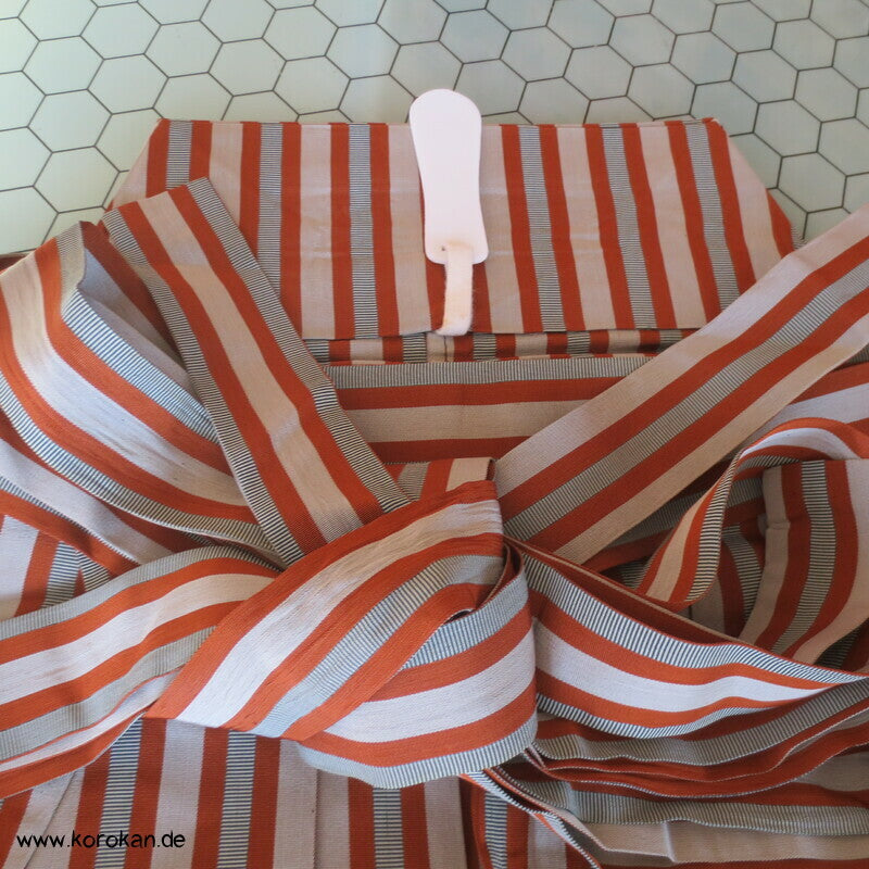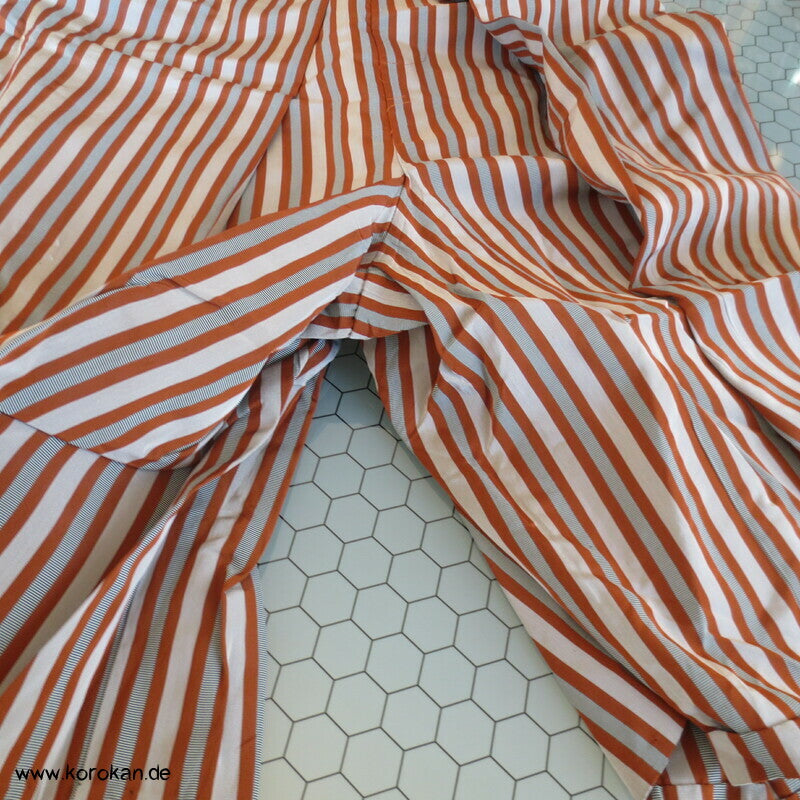 zimt - grau gestreifte Seidenrips Hakama - Umanori Kimono Hosen-Typ