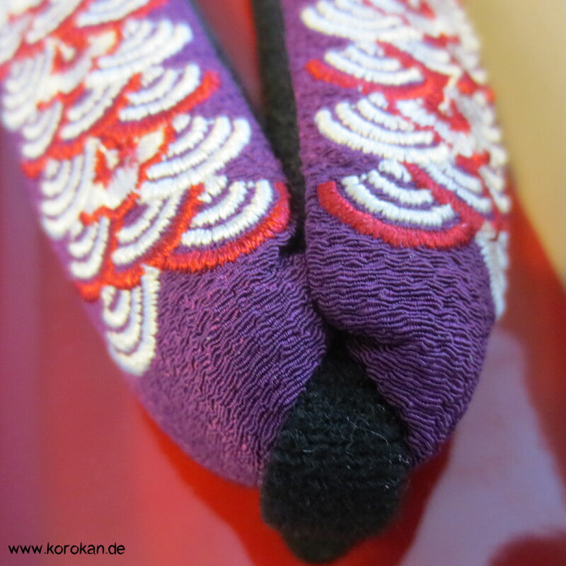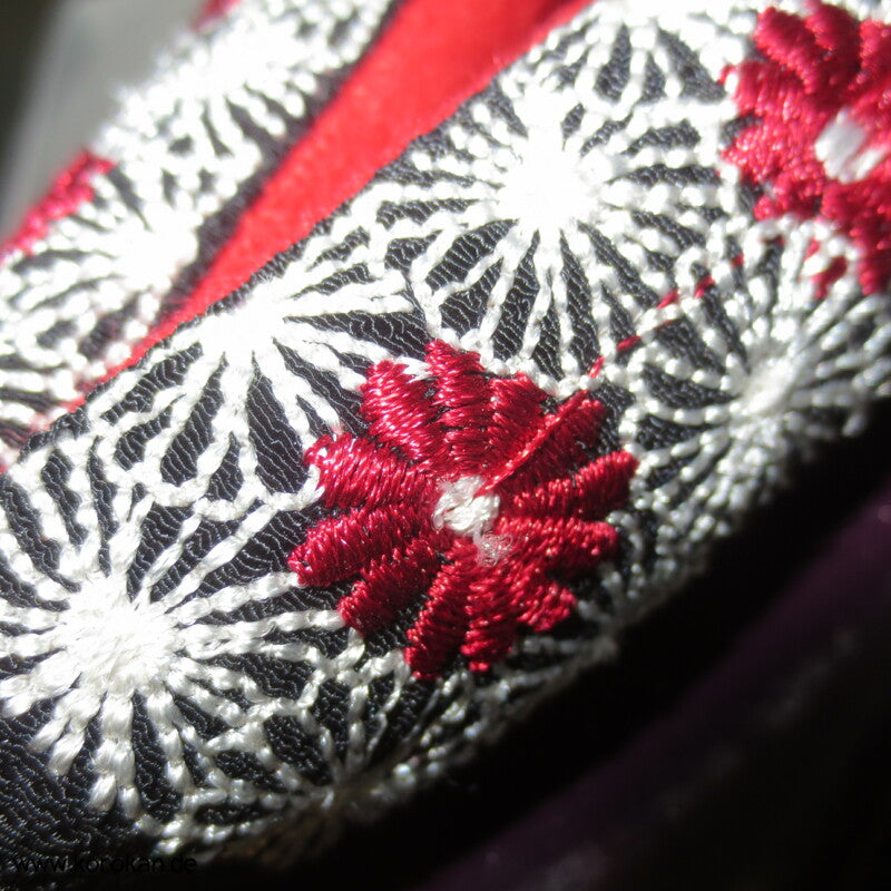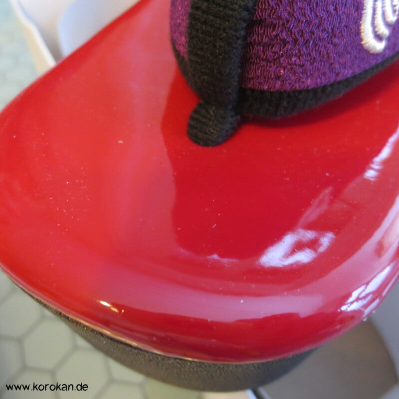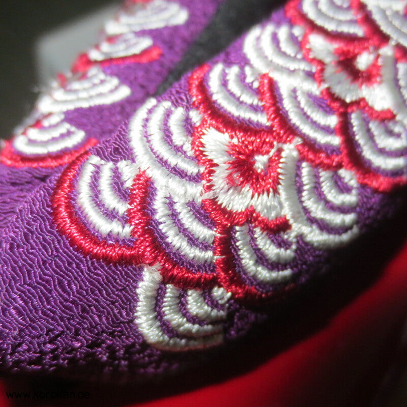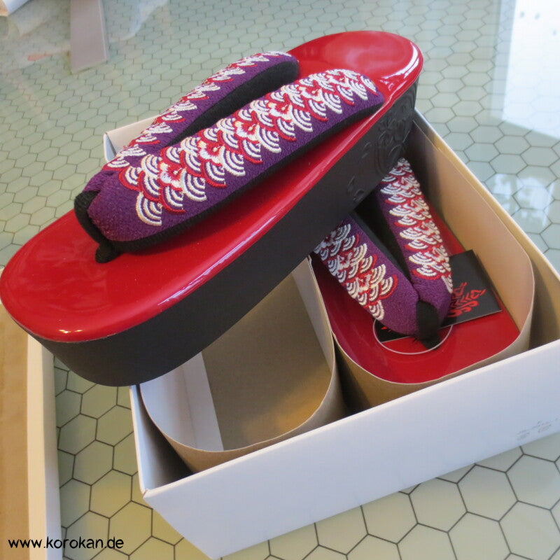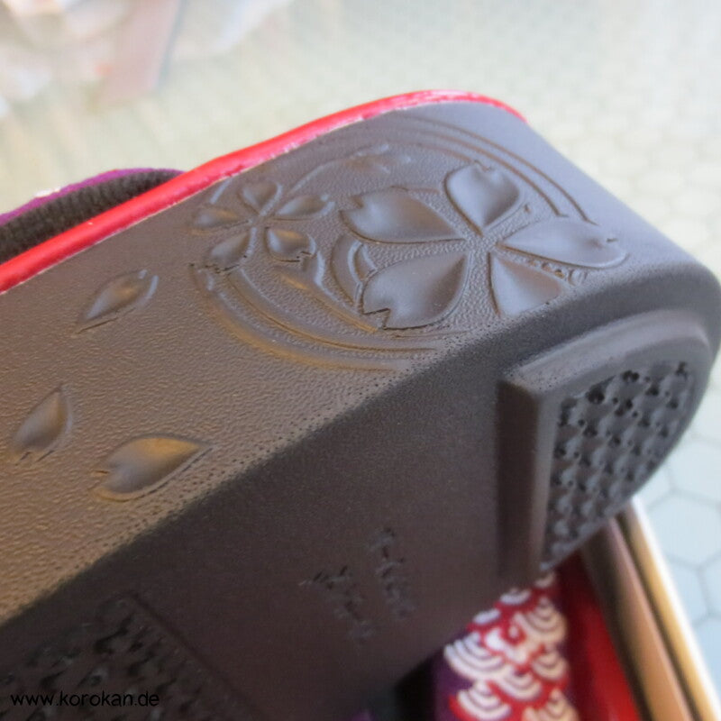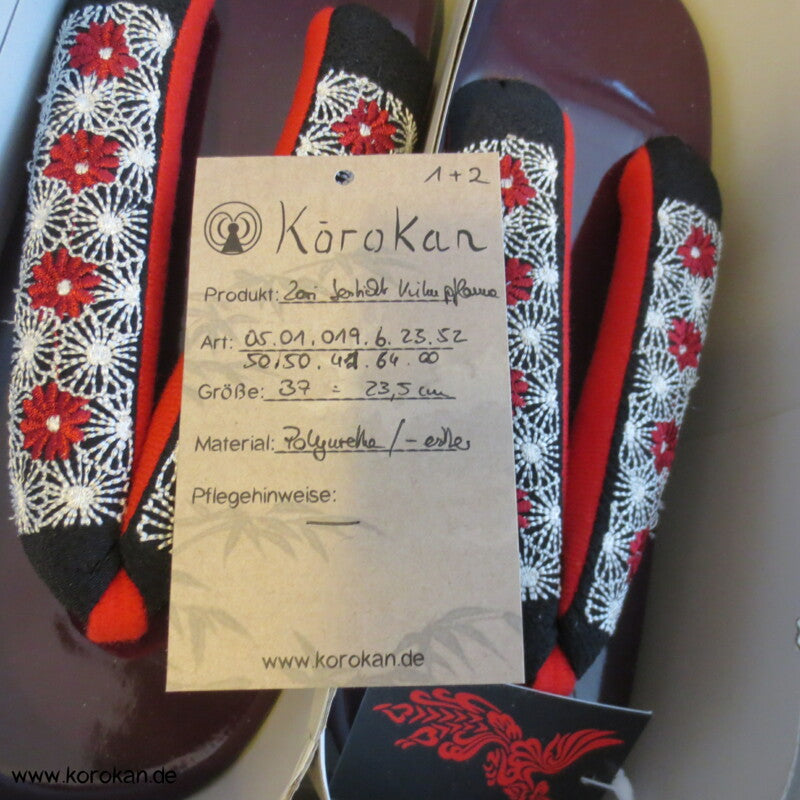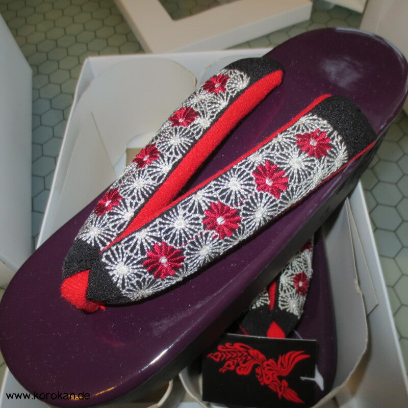 Vintage unbenutzte originalverpackte Zori - PU Sohle mit Sakura Druck, Lackleder Auflage und bestickte Riemen